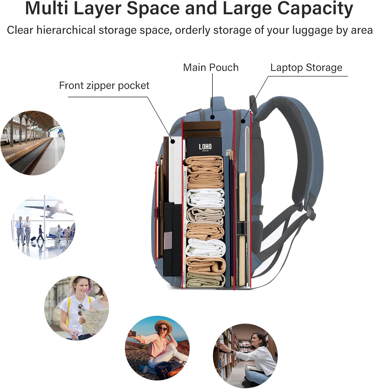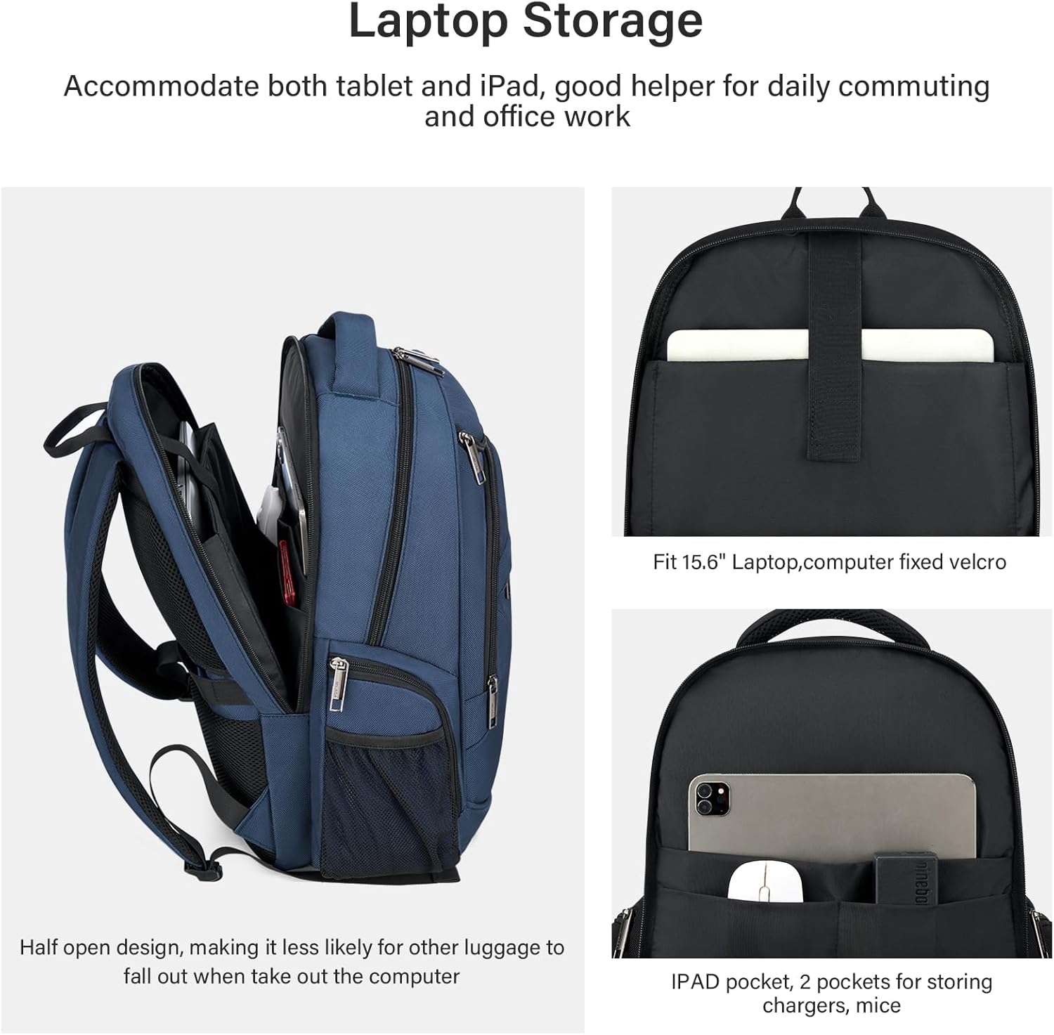 - Large Backpack: Totaly capacity is 24L, with a spacious main bag for storing luggage, clothes, and daily necessities. A pocket suitable for storing a 16.5-inch laptop, a 10.6-inch tablet, and a mouse charger. Multiple pockets in the front cabin to meet your business travel needs