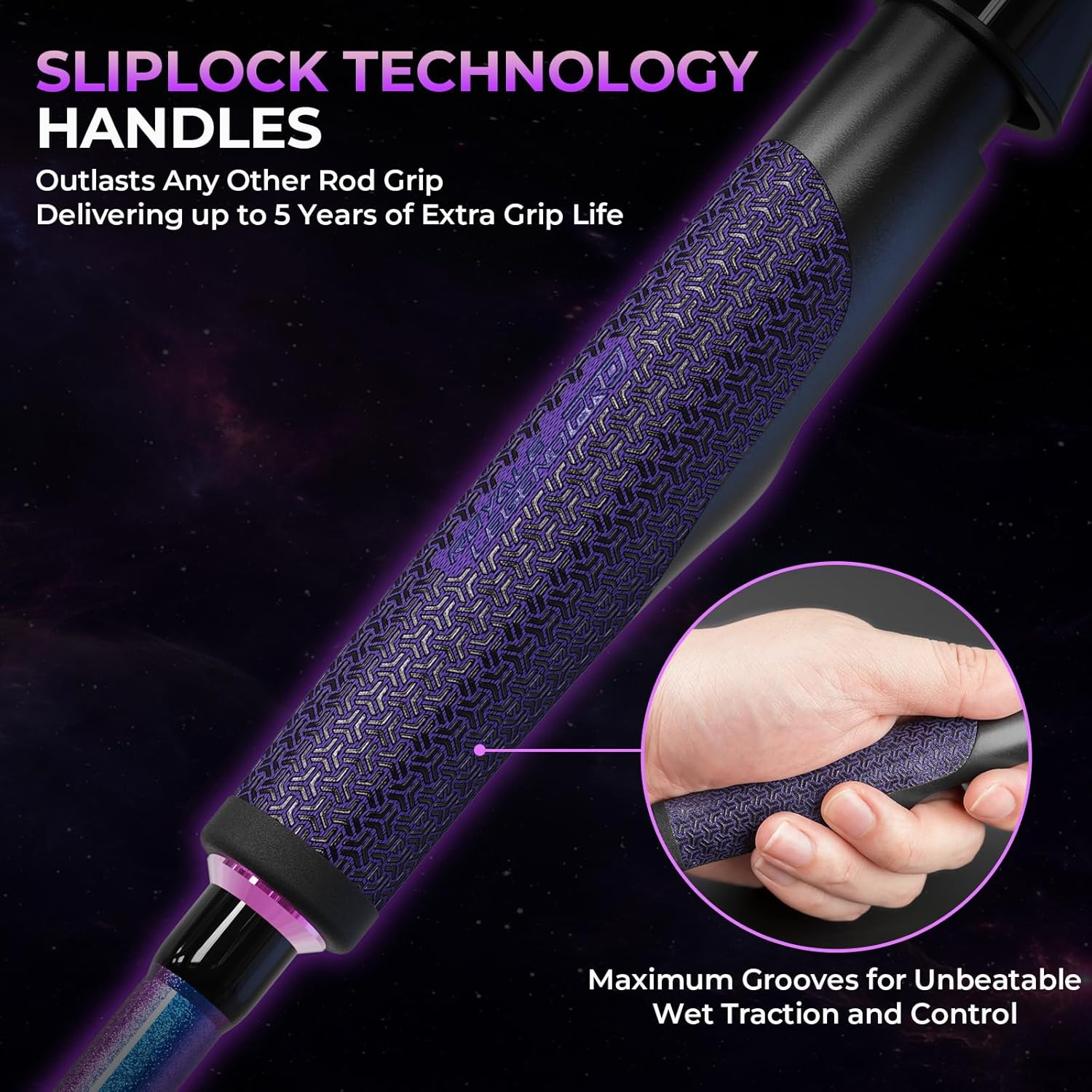 - SlipLock Technology Handles: Experience unparalleled grip and control with the SlipLock Technology handles featured on the Royale Legend Pro fishing rod. Engineered with a unique silicone texture boasting maximum grooves, these handles provide unbeatable wet traction, ensuring a secure grip even in slippery conditions. Outlast any other rod grip.