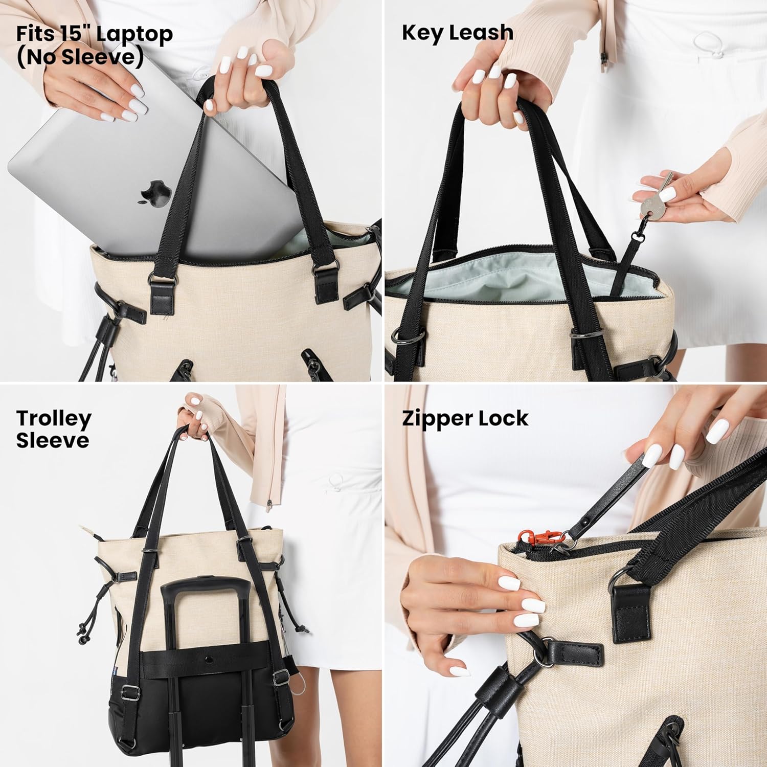- ANTI THEFT FEATURES - This bag is equipped with RFID protection, one exterior zipper lock tunnel, a clip lock for the main compartment opening, and a chair loop lock system. The bottom of the bag is lined with anti-slash fabric and the main strap is also slash proof.