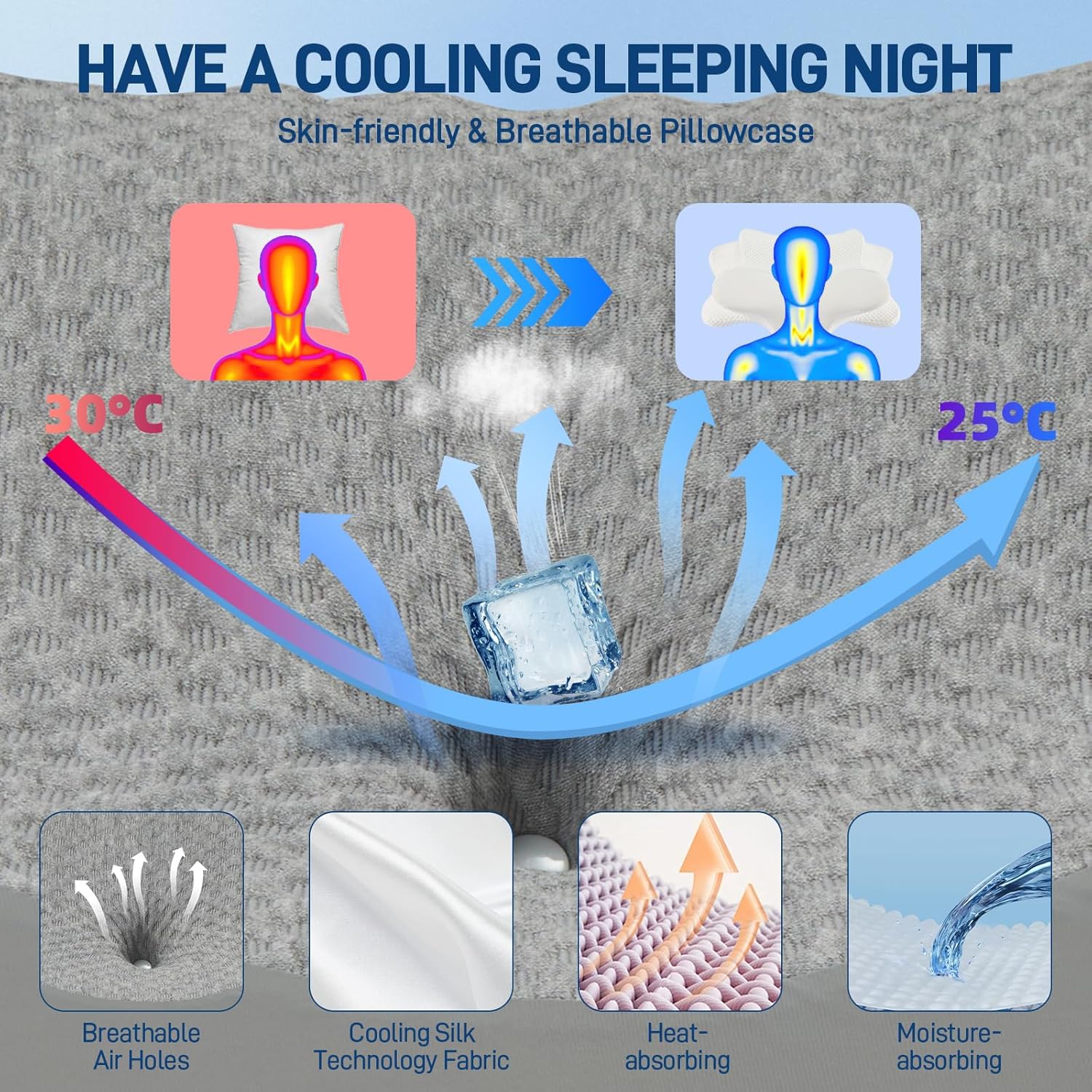 Cervical Neck Pillow - Memory Foam Pillow for Pain Relief Sleeping, Ergonomic Neck Support Contour Pillows for Side Back Stomach Sleepers,Orthopedic Breathable Pillowcase, Grey