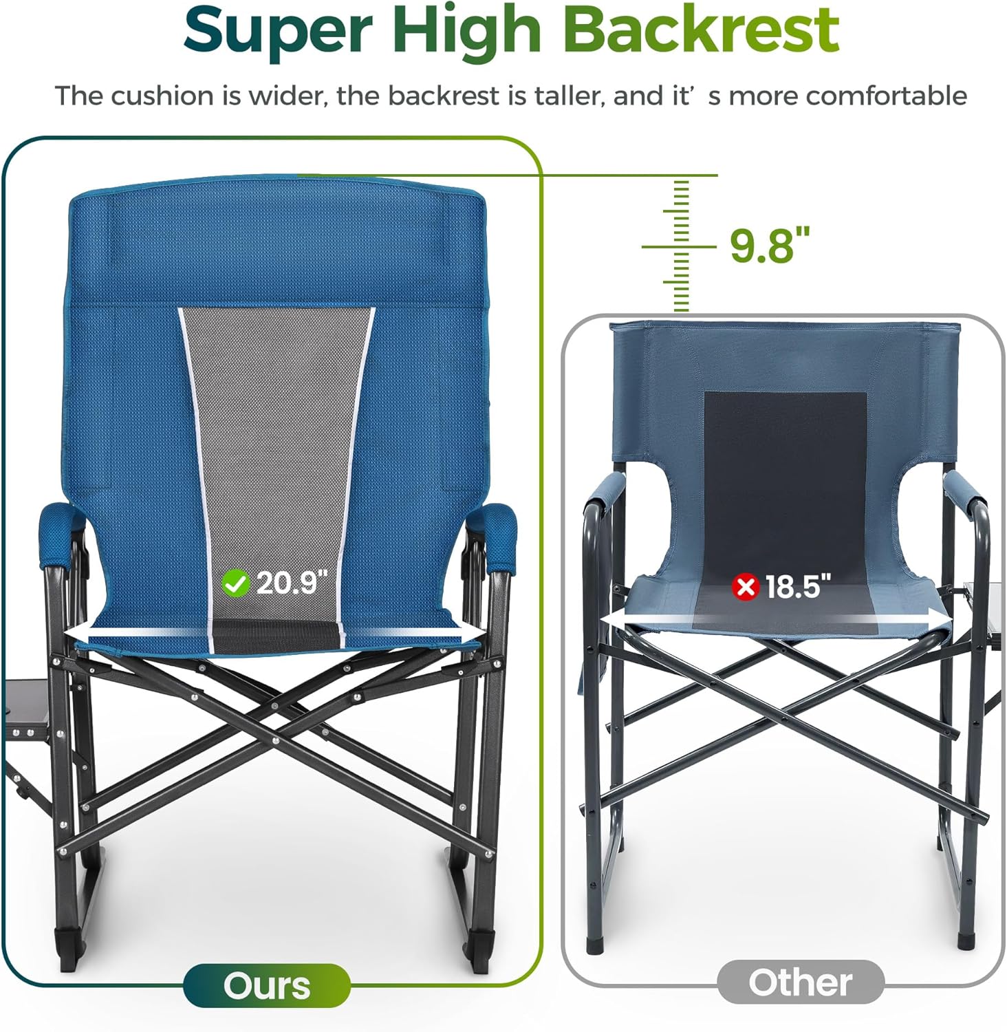 ALPHA CAMP Oversized Folding Camping Chairs High Backrest Reclining Director Heavy Duty Lawn Chairs for Adults Support 300 LBS Fishing Chairs with Large Side Table Cup Holders for Outdoor Fishing