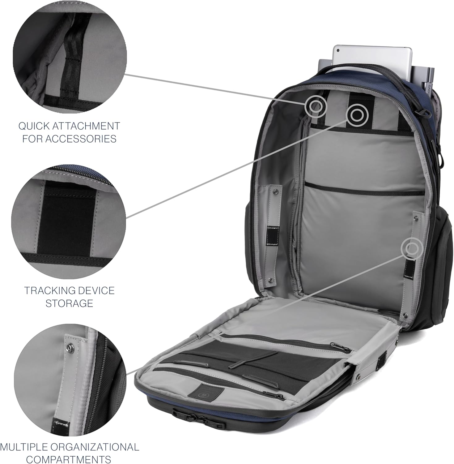 - ORGANIZED STORAGE & TECH PROTECTION: Multiple compartments and a handy key leash keep essentials in check. Travelpro ID TheftBlock pocket, dedicated pocket for a tracking device, and discreet anti-theft pockets. Separate padded sleeves cushion your tablet and laptops up to 16”. Travelpro QuickSlip pocket with magnetic closure is secure but easy to access cellphone.