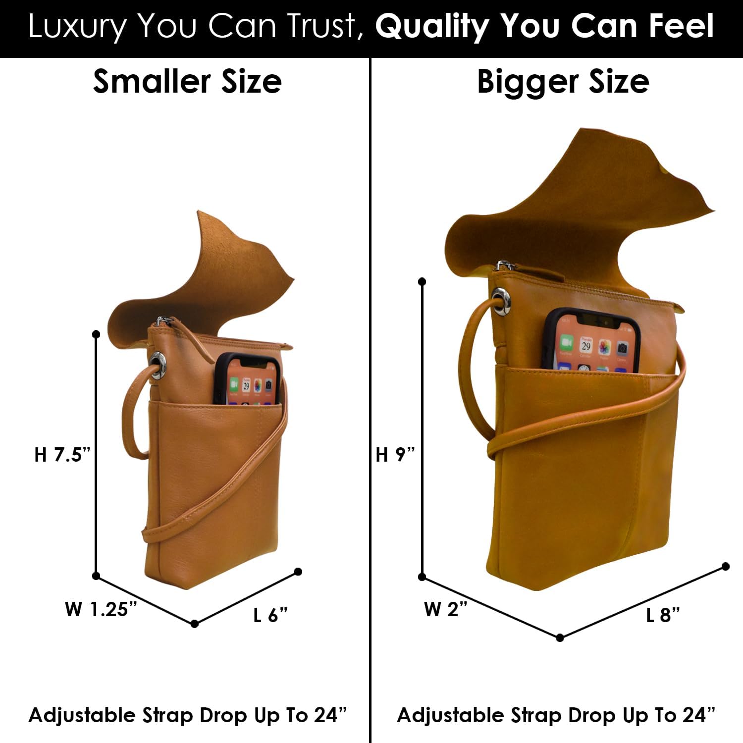 - Genuine Leather Crossbody Bag Dimensions: With dimensions of 8 x 9 x 2 inches and a drop length of 28 inches, this rfid small crossbody bags for women provides ample space without being bulky.Genuine Leather Crossbody Bag Dimensions: With dimensions of 8 x 9 x 2 inches and a drop length of 28 inches, this rfid small crossbody bags for women provides ample space without being bulky.