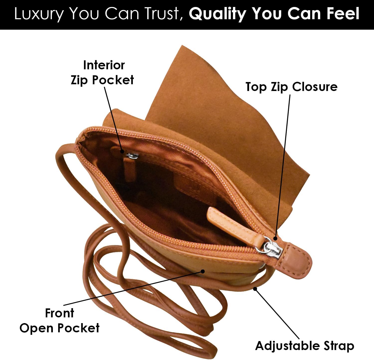 ili New York Leather Mini Sac Crossbody - Genuine Leather Crossbody Bags for Women with RFID Blocking, Adjustable Strap