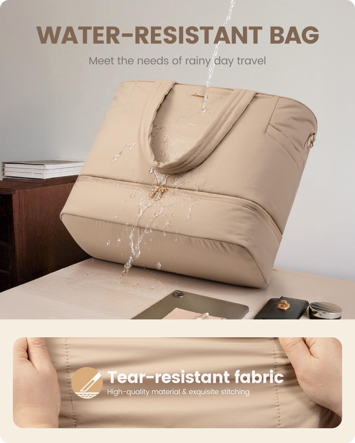 - 【Separate Shoe Compartment】: This travel bag includes a separate shoe compartment, effectively keeping shoes isolated from other items, so you don't have to worry about shoes taking up space and preventing stains or moisture from affecting other belongings. The personal item travel bag also contains odors within the shoe compartment, keeping this overnight bags for women clean.