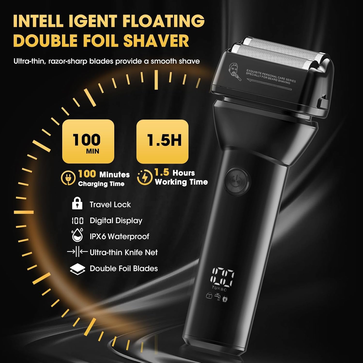 - INTELLIGENT FLOATING DOUBLE FOIL HEAD: Dumite electric shavers razor comes with smart double float shaving head with thin and smooth foil blade mesh that closely follow the contours of the face, with a two-speed shift adjustment, bring you with a comfortable quick and clean shave.IPX6 waterproof design for easier cleaning and maintenance.