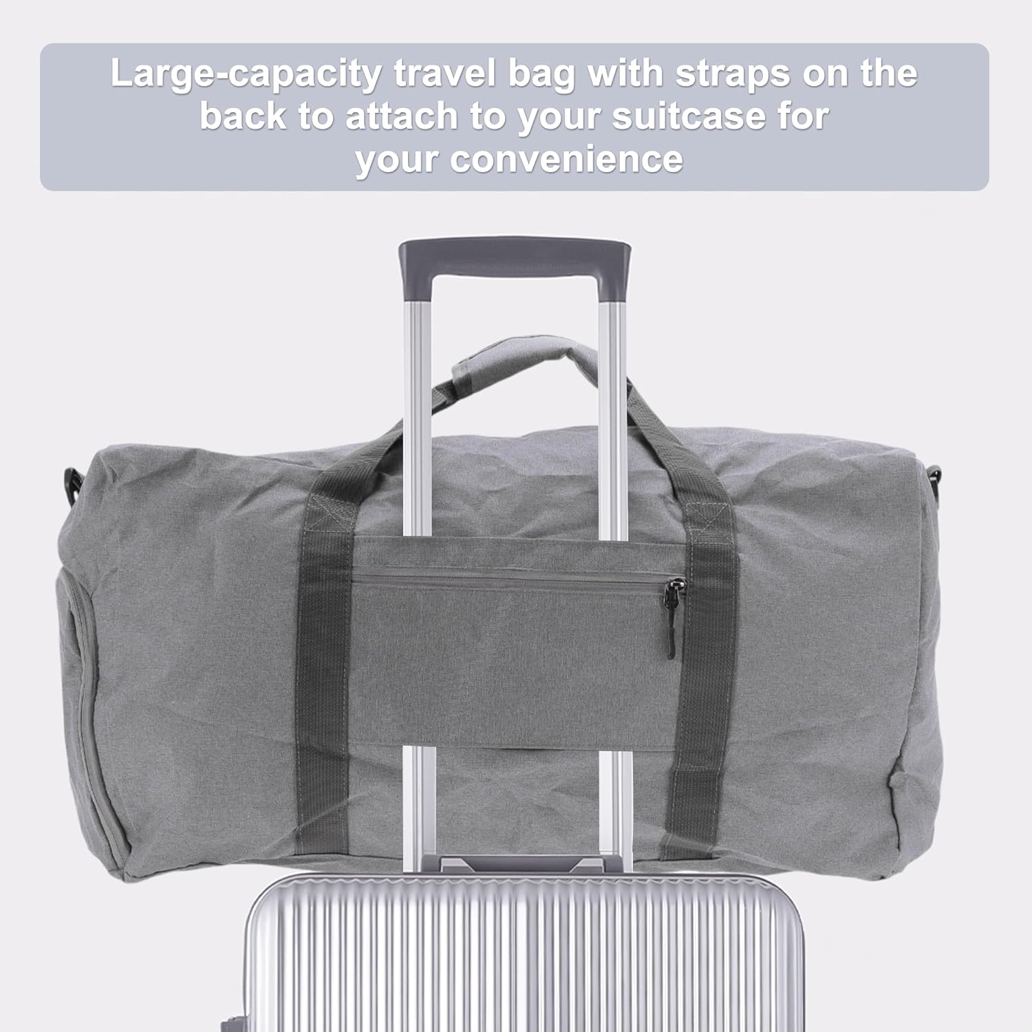 - Convenient Travel Companion: Featuring a back strap that securely attaches to luggage, this duffel bag is designed for easy portability and seamless integration with your suitcase as a carry-on bag. Simplify your travels by effortlessly combining your bags for smooth transportation in travel bags.