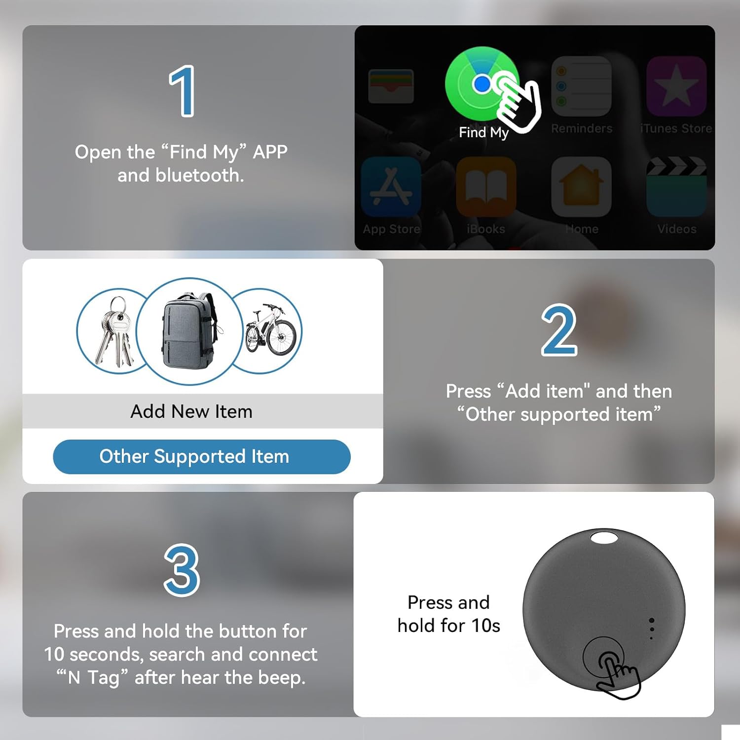 - 【Seamless connection, easy to get started】Smart tag "Find My" application (only compatible with Apple iOS) can easily connect to an iPhone. Our smart key finder uses the latest Bluetooth tracking technology to easily bind your key and track its location at any time. With just a gentle click on the mobile application, keys can be quickly found wherever they are hidden in the house or accidentally forgotten in the office, making search simple and efficient