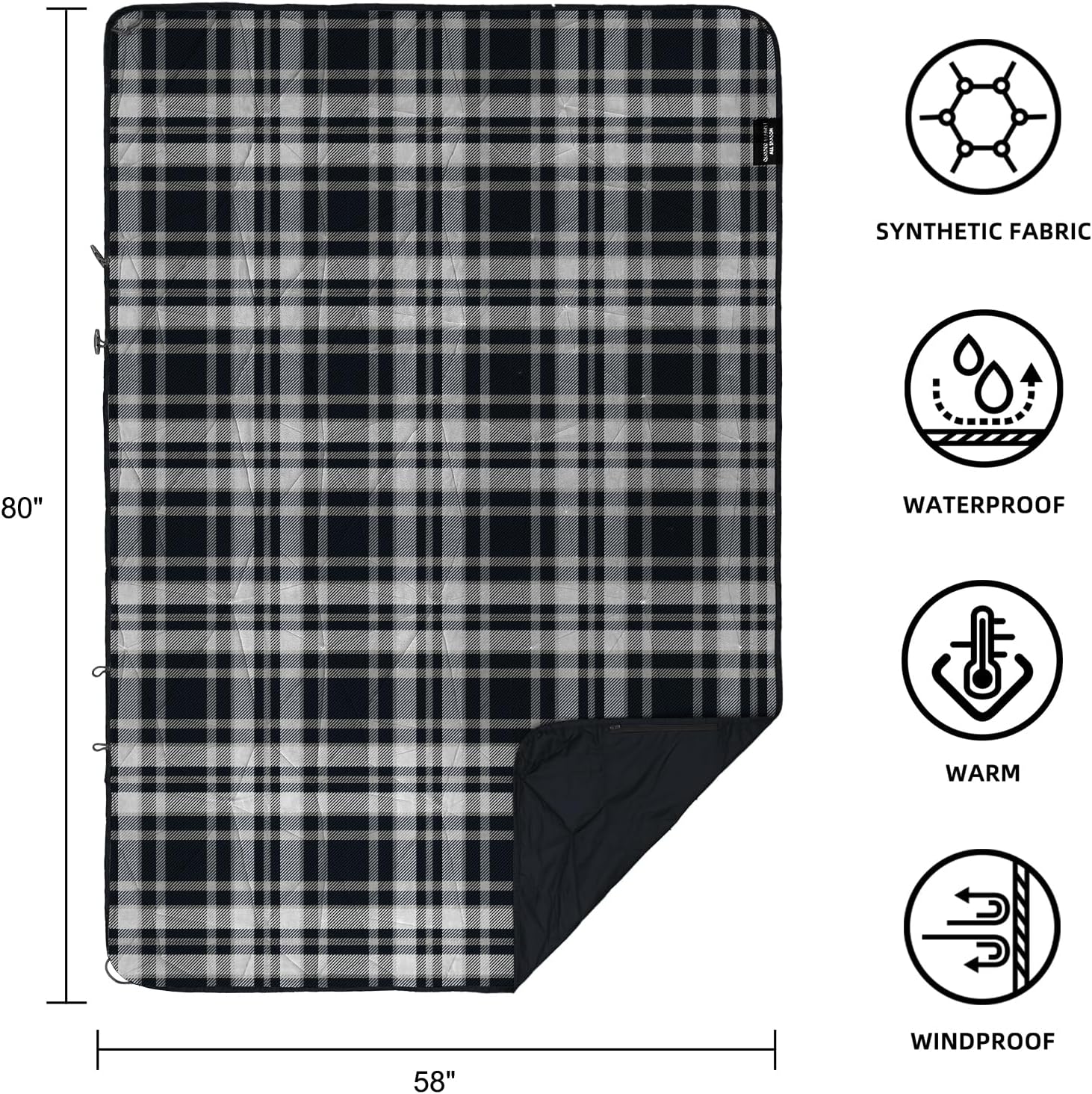 Outdoor Waterproof Blanket, Foldable Fleece Stadium Blanket for Outdoor Sports Event, Camping, Concerts, Car, Pet, Picnics - Windproof, Wearable, Machine Washable 80" x 58"