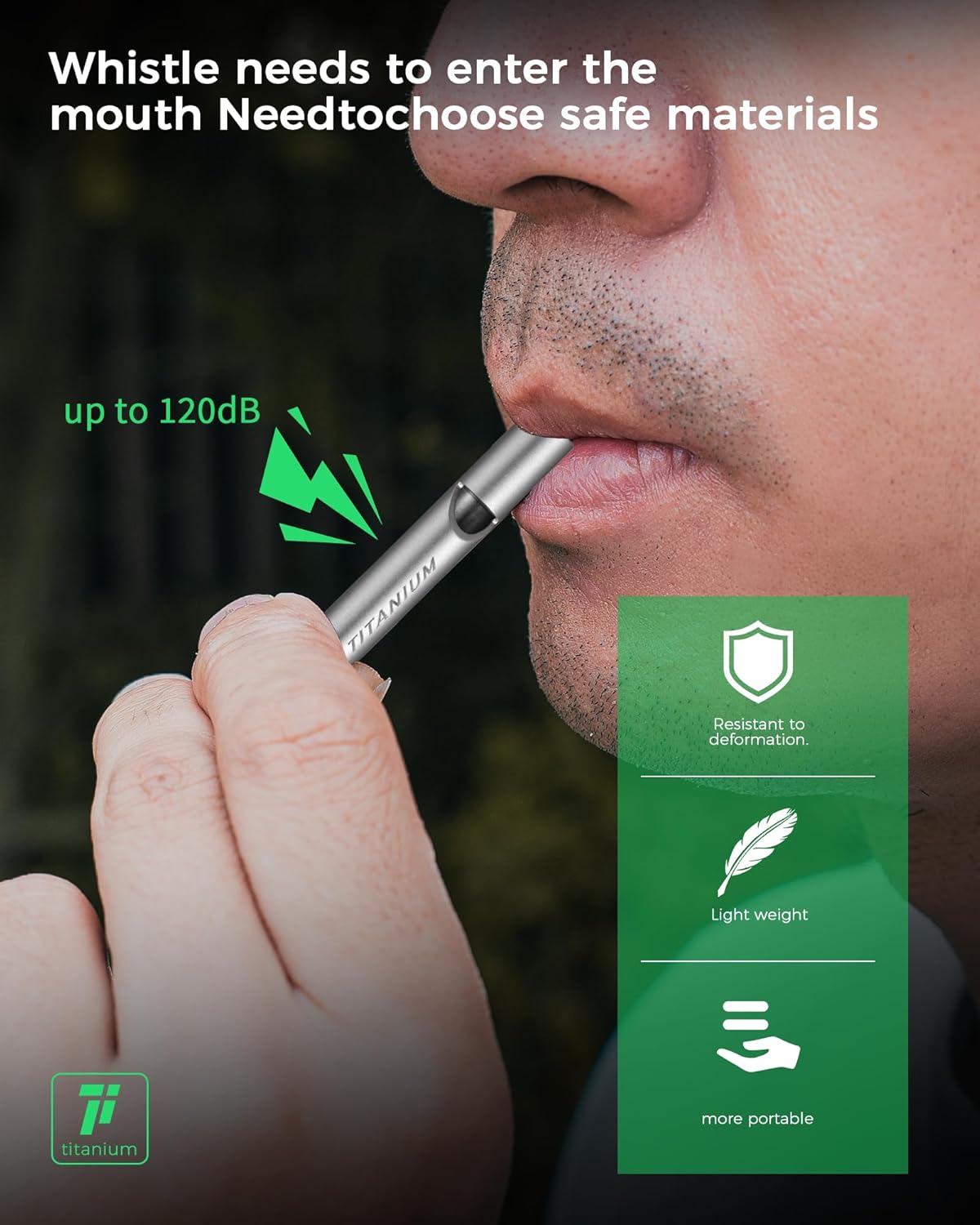 Titanium Emergency Whistle, Survival Safety Whistles for Coaches,Dog Training,Hiking, Life Saving-Loud up to 120db