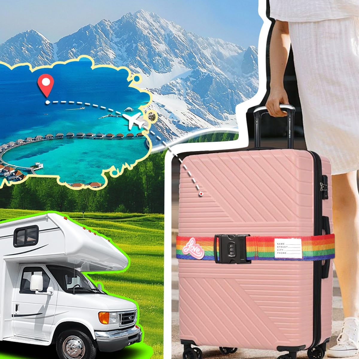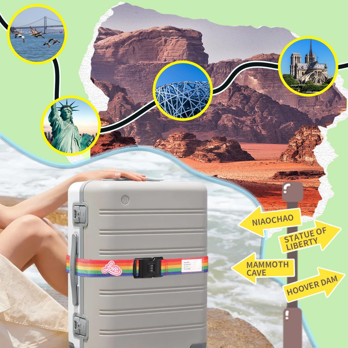 - 【ADJUSTABLE FOR ANY SIZE】The straps are adjustable from 3 to 6 feet, allowing you to securely fit various suitcase sizes—great for both small carry-ons and larger checked luggage.