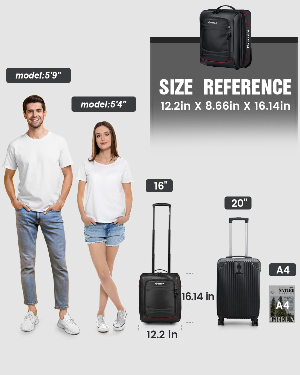 - 16 Inch Underseat and Carry On Size: Fits in most airline overhead compartments and under the seat in front of you, it’s measured (included wheel) 12.2* 8.66*16.14 inch(L*W*H), perfect as underseat carry on luggage for 1-2 day trip with 30L capacity