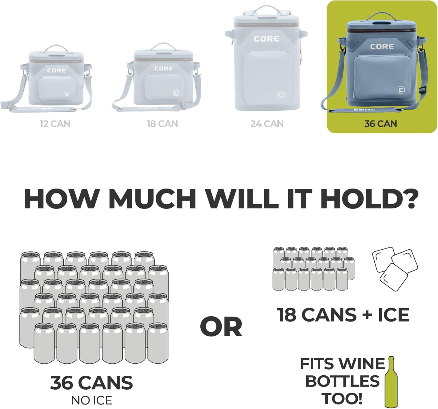 CORE Magnetic Leak Proof Soft Cooler with Waterproof Zipper | Insulated Bag Portable Ice Chest Box | Best Soft Cooler for Food & Beverages for Tailgating, Car Camping, Travel, and Family Beach Picnics
