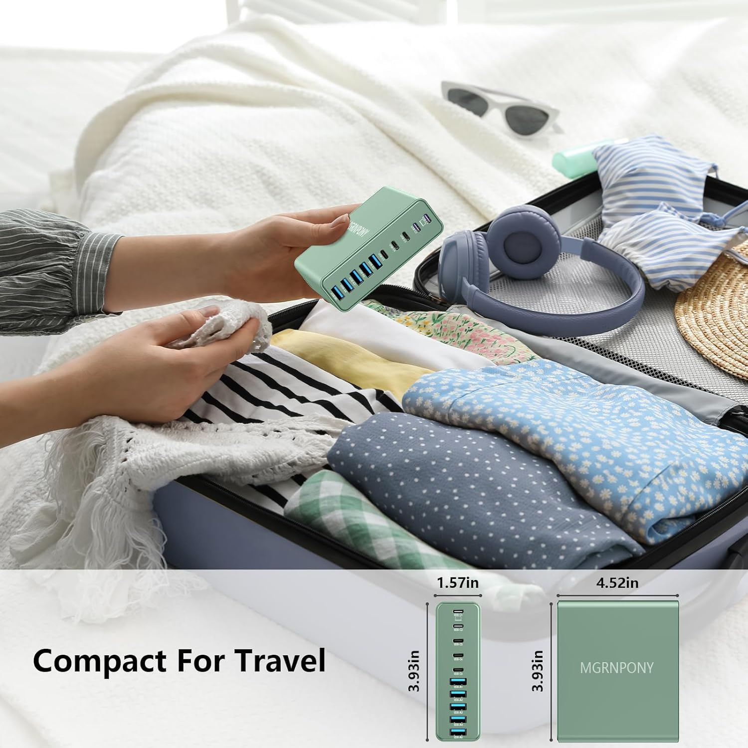 - Compact & Travel-Friendly: This compact charging station is designed for on the go with lightweight feature. You can place it horizontally or vertically to save space. Just plug it into a regular outlet with our 5ft/1.5m power cord, and you won’t need multiple bulky chargers when traveling. Charge all your devices with one sleek, portable solution.