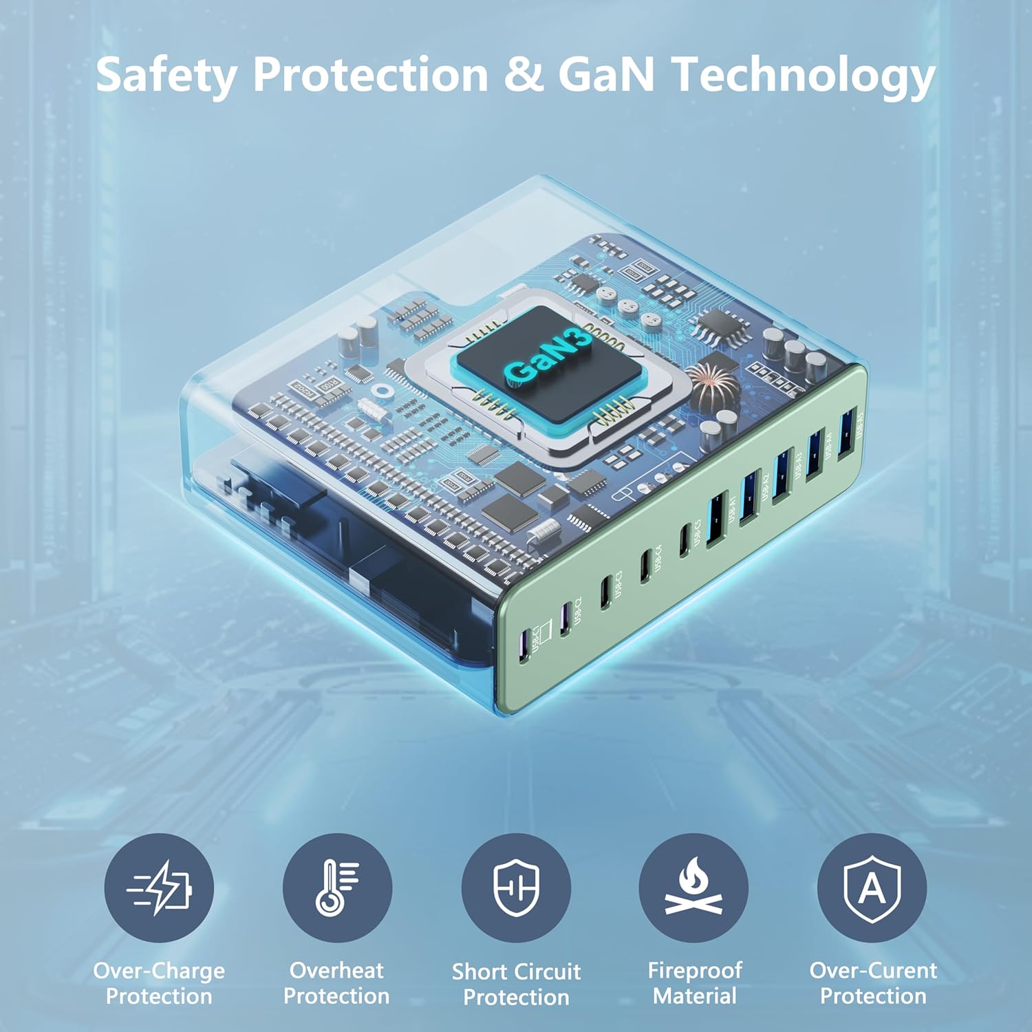 - Multiport USB-C & A Charging Station: Boasting to charge up to 10 devices at once, this versatile charging block features 5 USB-C ports and 5 USB-A ports. The dedicated USB-C port powers newer electronics like laptops, while the legacy USB-A ports support older devices. Unlike most chargers with false advertising and outputs that slow down when multiple ports are used.