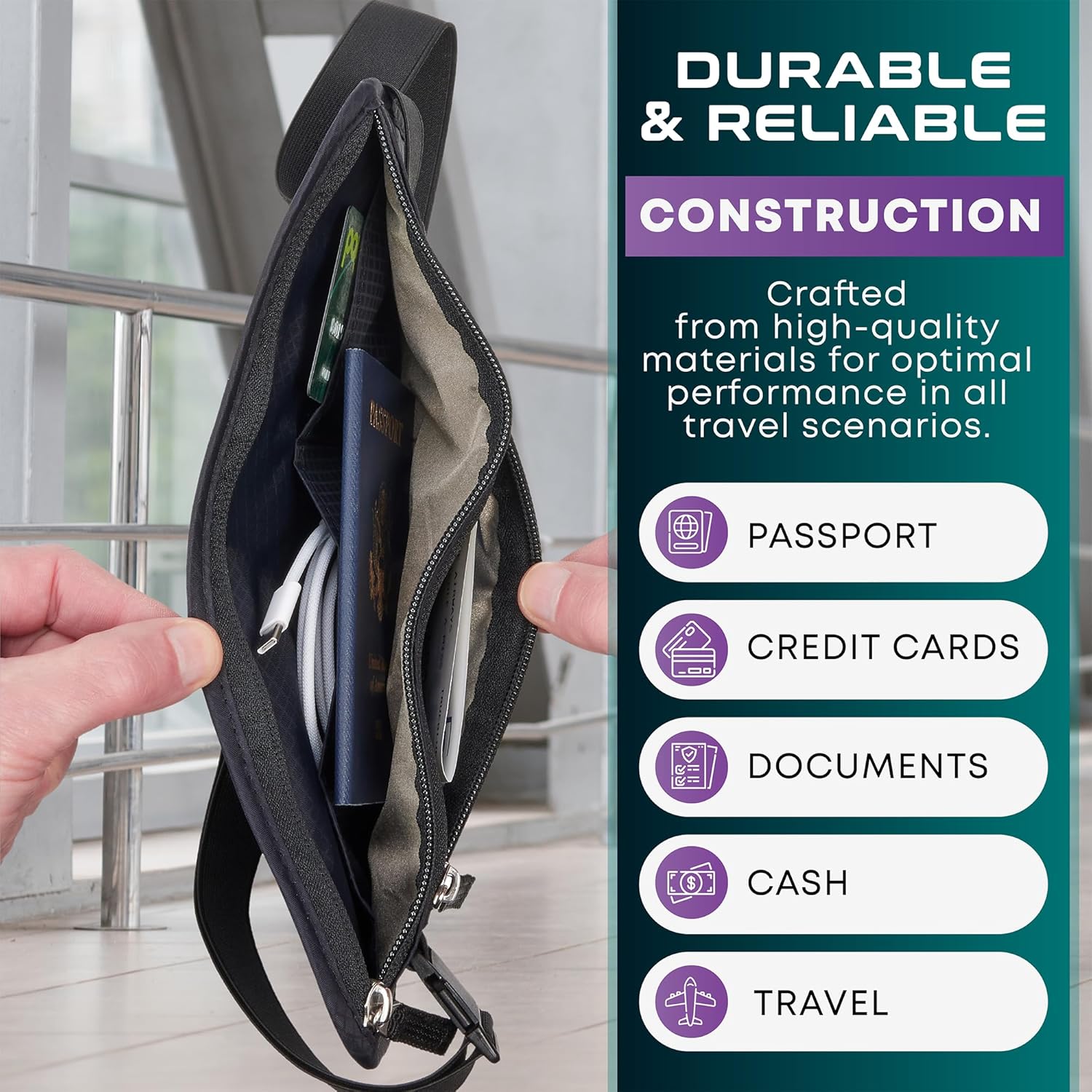 - Secure Hands-Free Travel Pouch: Safeguard your most valuable possessions in our hands-free travel pouch. It's the perfect place to store your passports, IDs, tickets, credit cards, and cash ensuring you have everything you need at your fingertips.