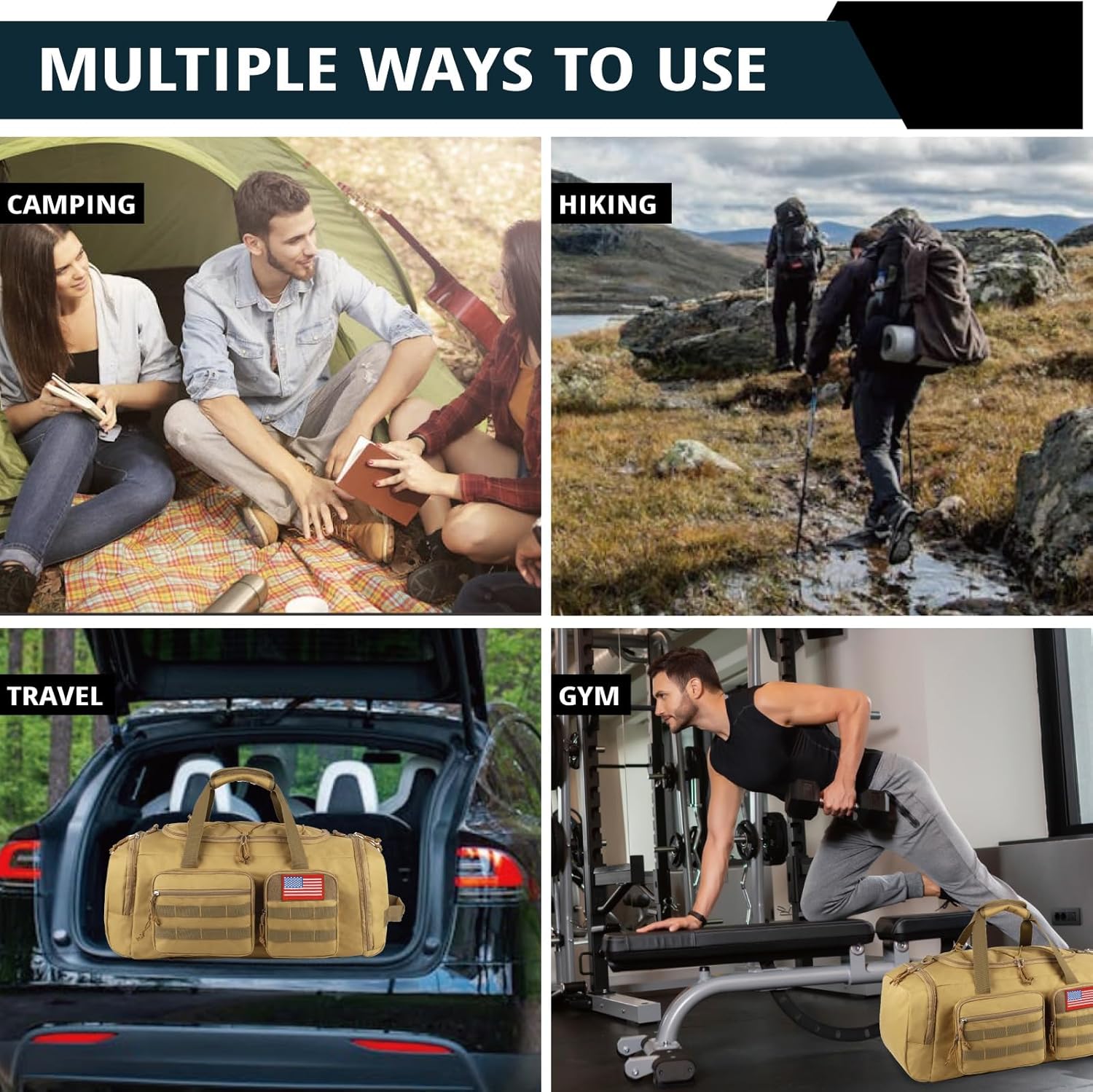 Tactical Gym Bag for Men,70L Large 3 in 1 Sports Duffle Bag with Shoes Compartment for Travel,Water Resistant Travel Backpack Weekender Overnight Bag with Wet Pocket for Women
