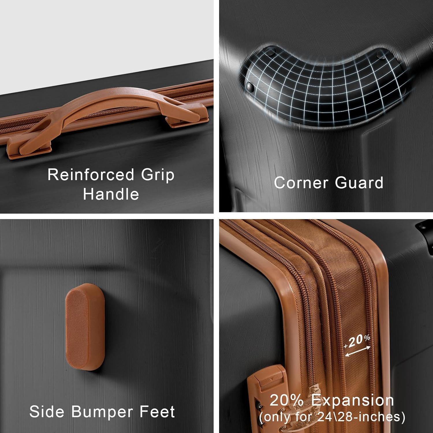 Merax Luggage Sets 2 Piece Suitcases with Wheels, Hardshell ABS Expandable and Lightweight, TSA Lock, Spinner Wheels, Carry On Luggage with Corner Guards (20 28 inch Black Brown)