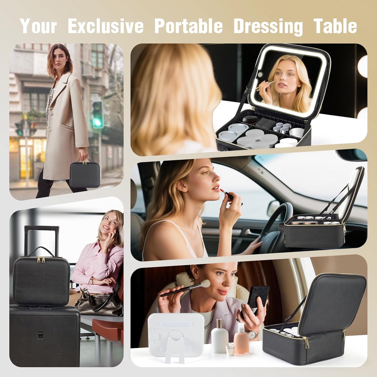 - 【Portable Dressing Table】6 adjustable ABS dividers and 10 makeup brush slots of the lighted makeup case(10.63*9.85*4.6inch/27*25*11.7cm) enough to accommodate various combinations in the travel makeup case. With this makeup case organizer, you can storage all your cosmetics organized and find what you need quickly and efficiently.