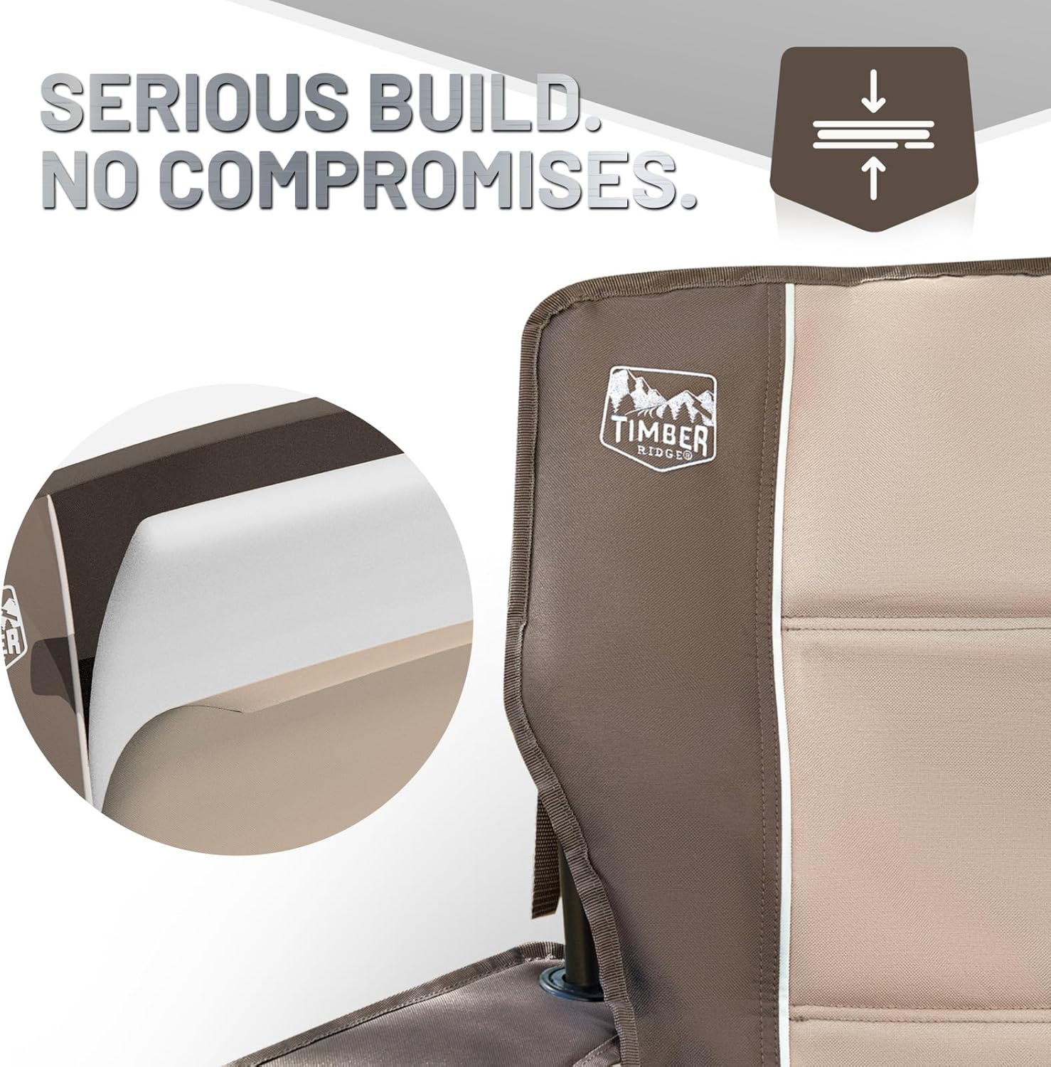 TIMBER RIDGE Oversized Folding Camping Chair for Adults, Support 550 LBS Heavy Duty with Cup Holder Side Pocket for Camp, Lawn, Picnic, Tan, 2 Pack