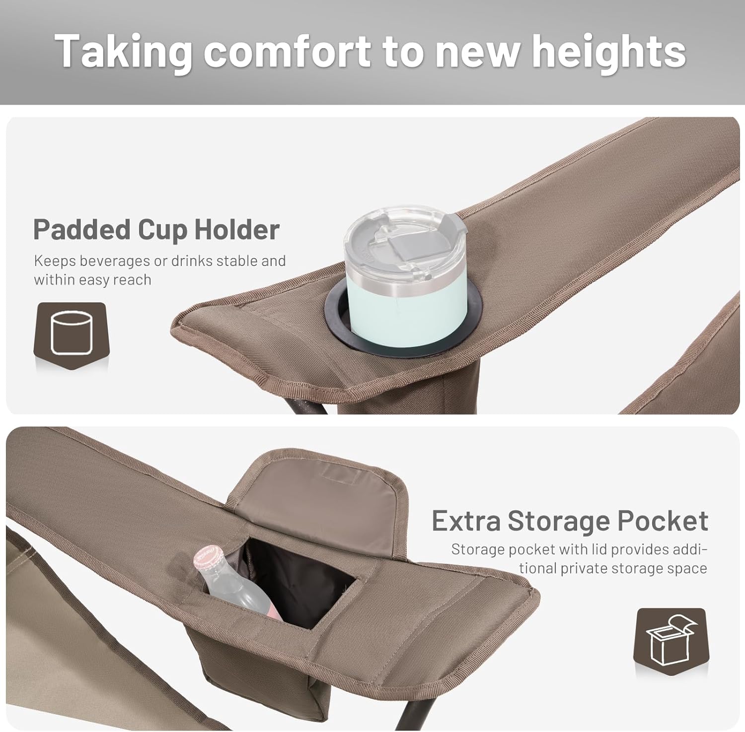 - CONVENIENT STORAGE: The heavy folding chair features a cup holder and storage pocket for essentials like sunscreen and phones; includes a carry bag for easy transport