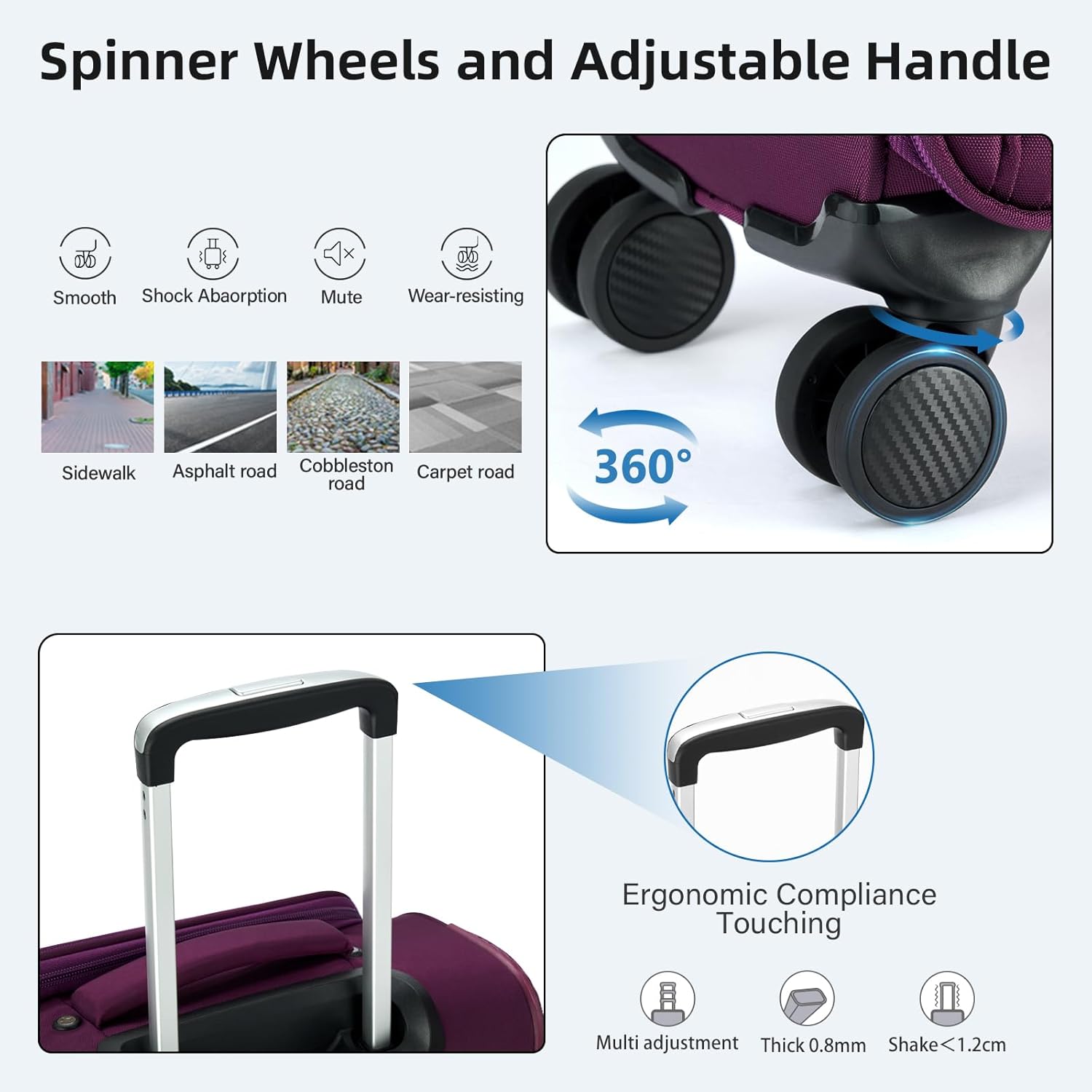- Smooth Mobility & Durability:Suitcases with wheels equipped with 4 silent dual spinner wheels for 360° effortless maneuverability and a retractable telescopic handle for adjustable height. Rolling suitcase built to withstand frequent use with reinforced corners and impact-resistant frame.