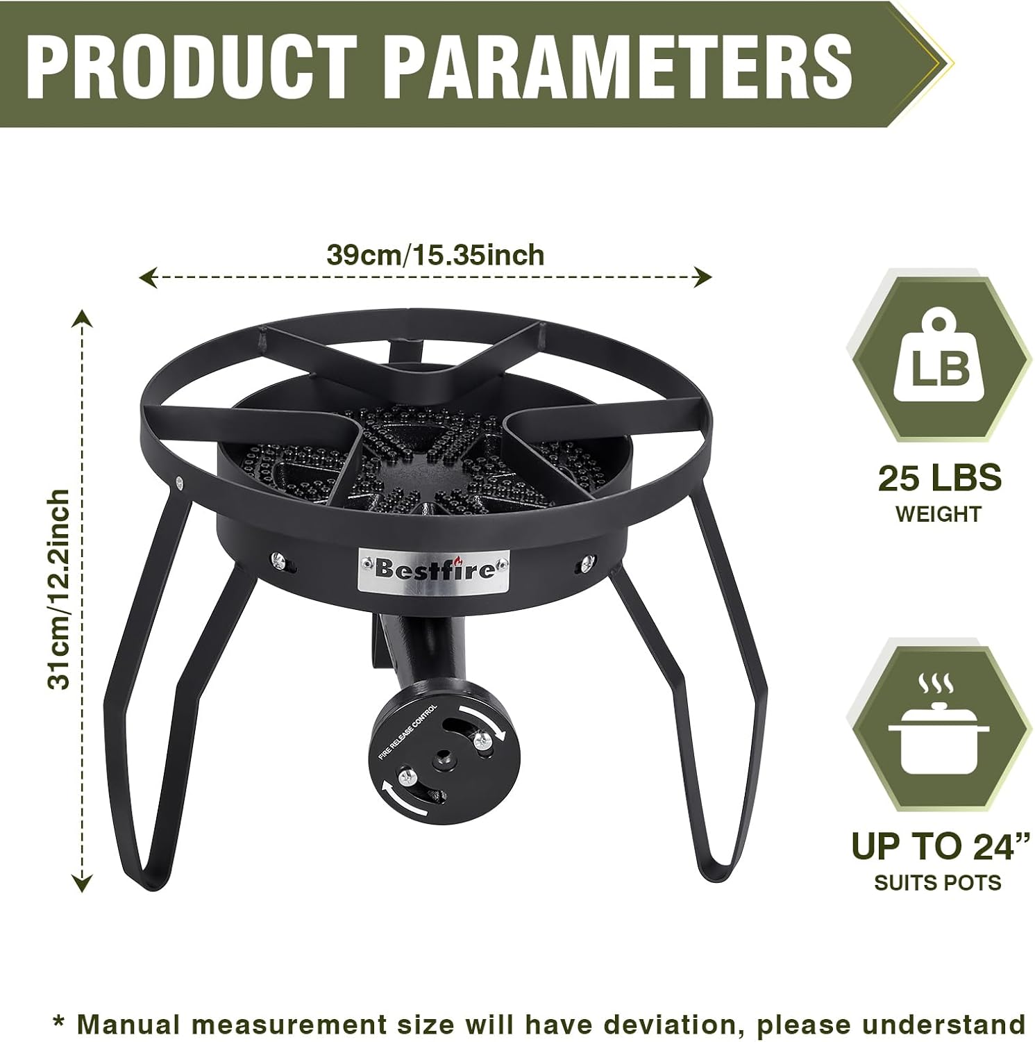 - Strong Firepower: Bestfire propane burner outdoor stove delivers an impressive 200,000 BTU high heat output and features an adjustable air control panel. This allows you to regulate the heat from low to high, enhancing any cooking adventure.