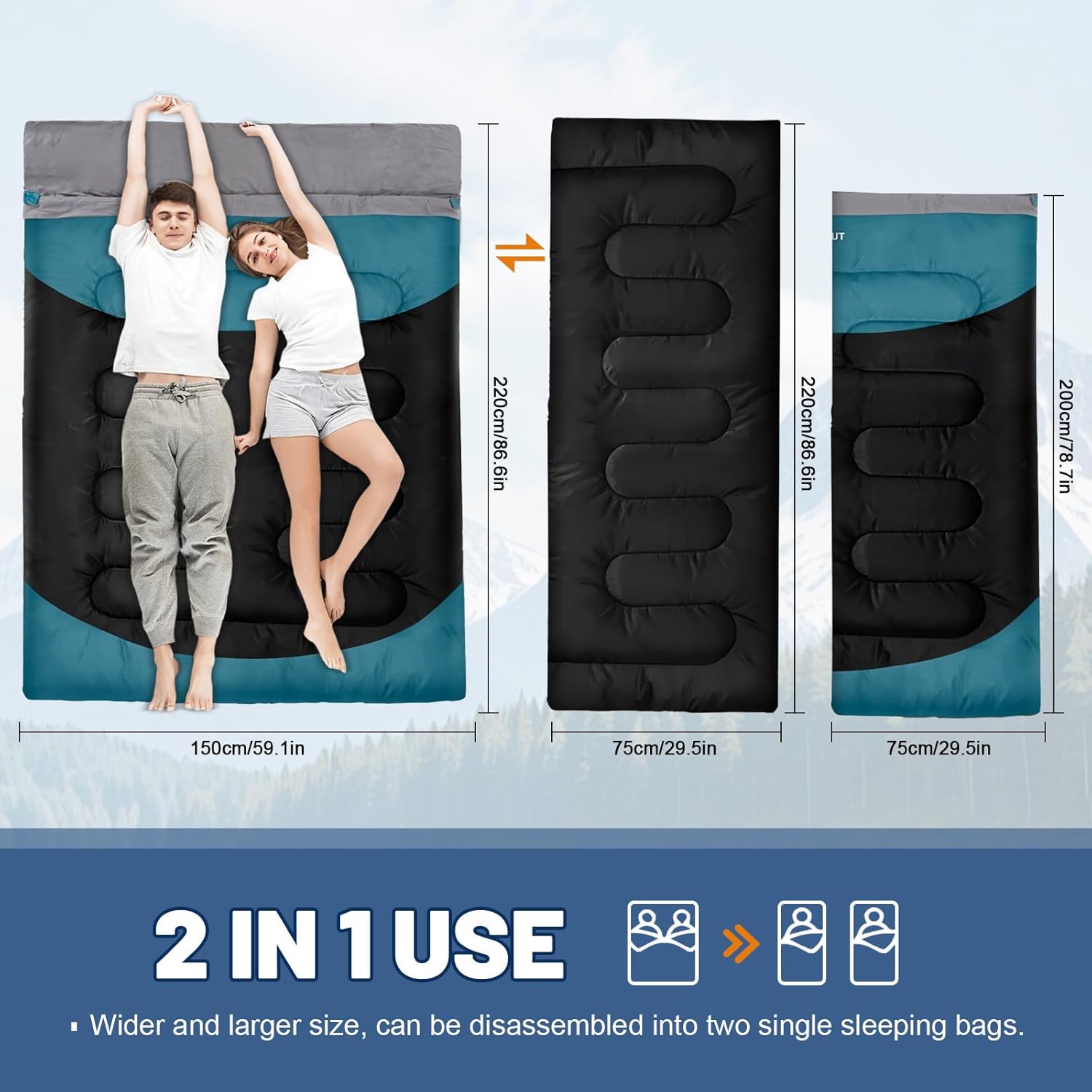 - Versatile Design: This queen-size sleeping bag can transform into two single sleeping bags or be used as two outdoor blankets throughout the year (Spring, Summer, Autumn, and Winter).