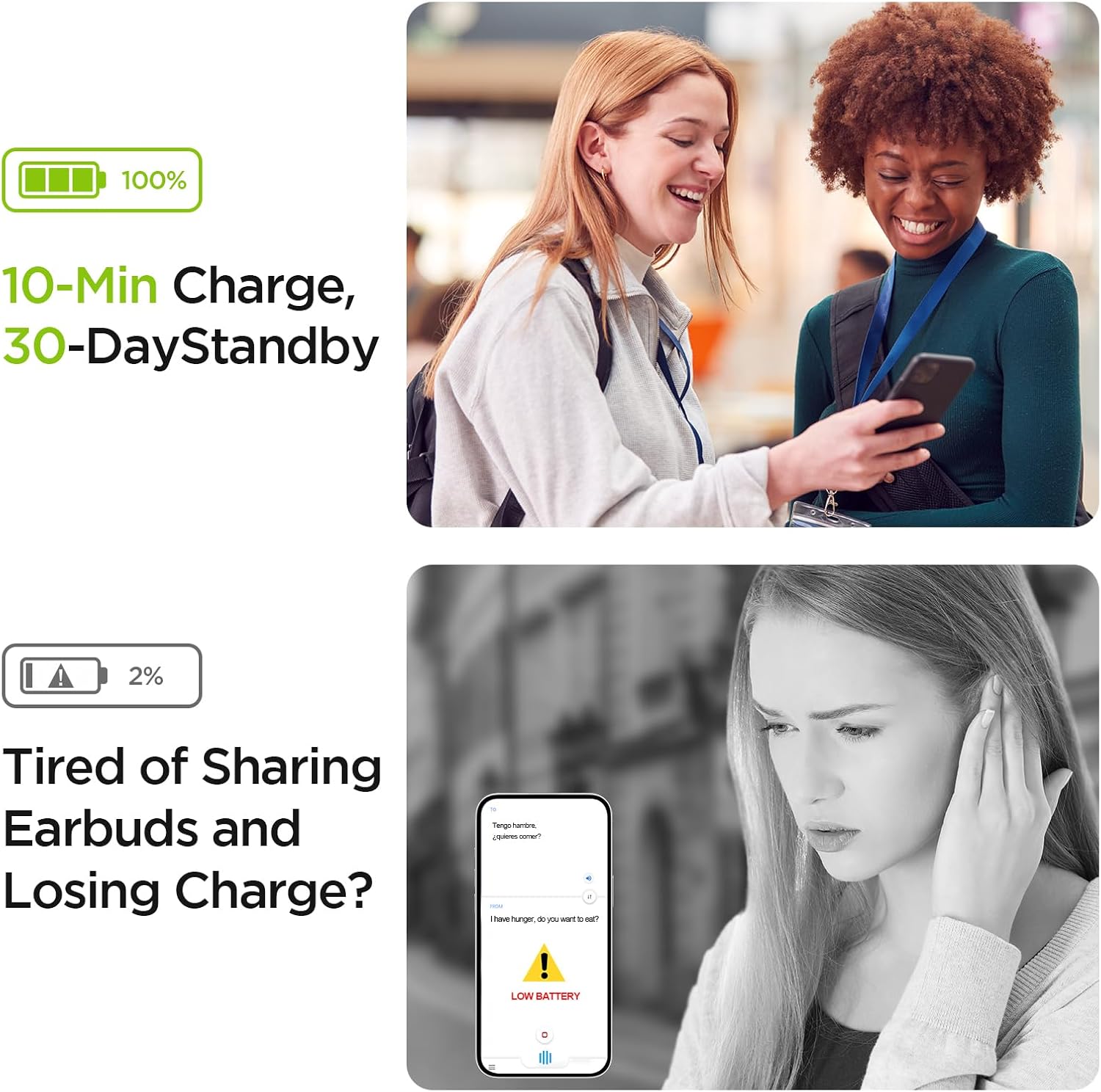 - 【Your Perfect Business & Travel Companion】This sleek and lightweight translator device is designed for ultimate portability, fitting easily into your bag or pocket, making it the perfect travel and business companion. It doubles as a phone stand for hands-free use. Charge for 10 minutes, standby for up to 30 days, keeping you ready for any situation.