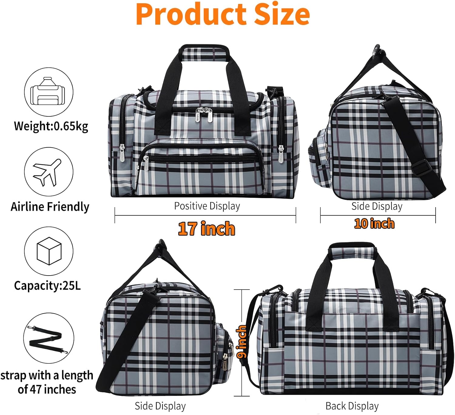 - PERFECT SIZE FOR FLIGHTS: Carry on duffel bag measures 17"×10"×9", meets the United Airlines, Spirit Airlines and Frontier Airlines' personal item size requirement. It fits under the seat when flying for saving your airline baggage fees.