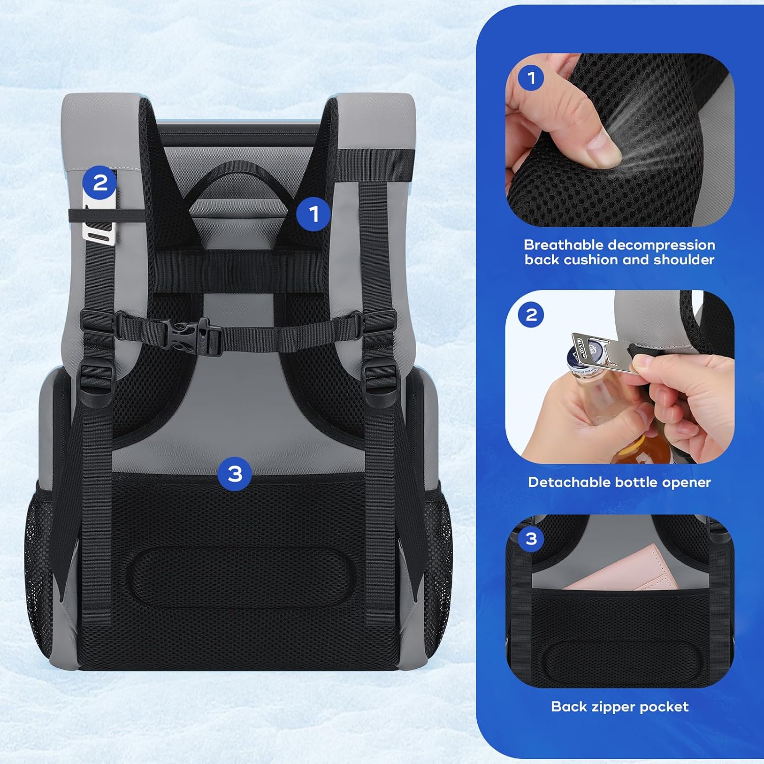 - Perfect for Outdoor Adventures: Our ice chest backpack is designed to keep your food and drinks cold while you enjoy outdoor activities such as hiking, picnics, camping, and beach outings. With its insulated compartments and comfortable design, it’s the ideal companion for all your outdoor escapades, ensuring you stay refreshed and hydrated throughout your adventures.