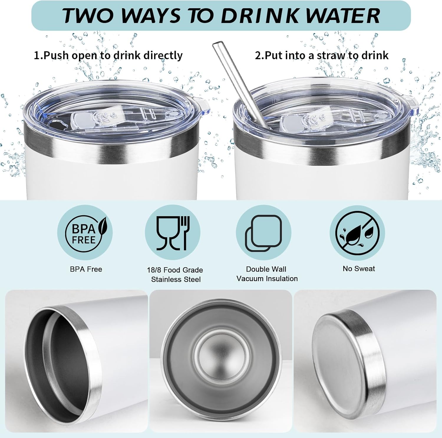 - đă20 oz Tumbler with Straw and LidăThe tumbler includes a BPA-free lid that slides to prevent spills; furthermore, we provide a stainless steel straw along with a straw brush for dual drinking options that enhance usability and ease of cleaning.