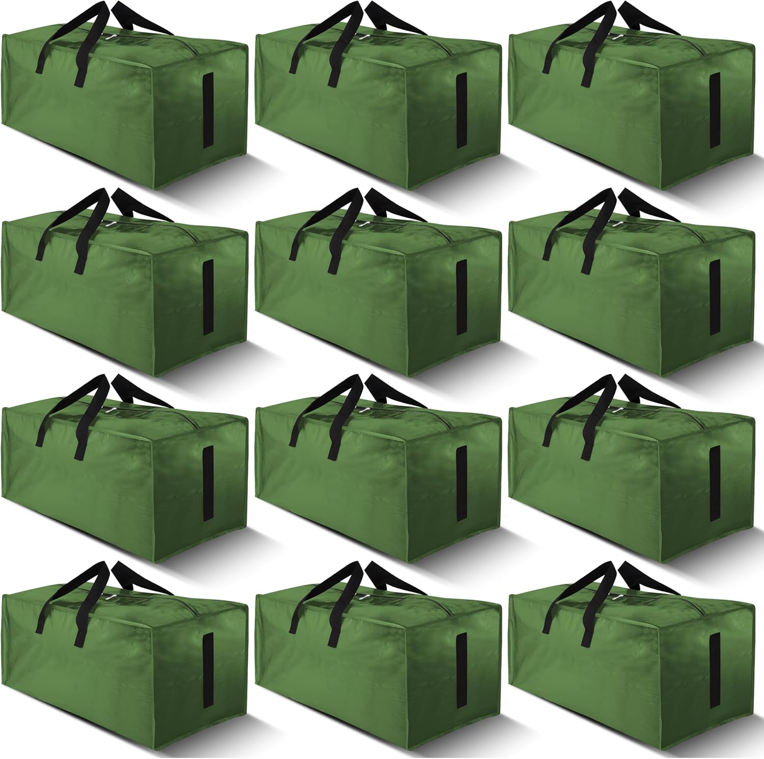 12 Pack Large Strong Moving Bags with Zippers & Carrying Handles - Water-Resistant - Heavy Duty Storage Tote for Space Saving, Fold Flat, Alternative to Moving Box (Olive Green)
