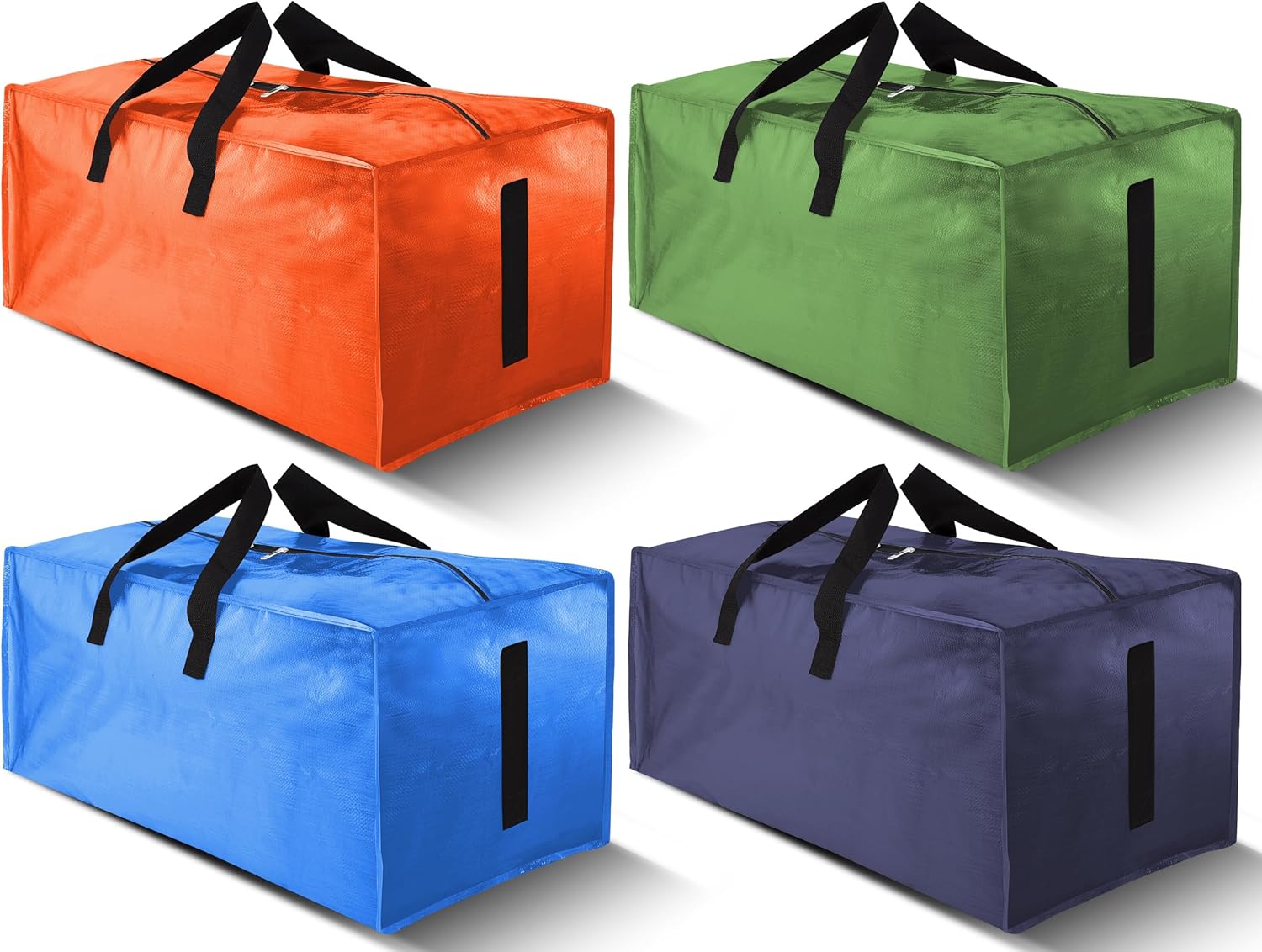 4 Pack Large Strong Moving Bags with Zippers & Carrying Handles - Water-Resistant - Heavy Duty Storage Tote for Space Saving, Fold Flat, Alternative to Moving Box (Multicolored)