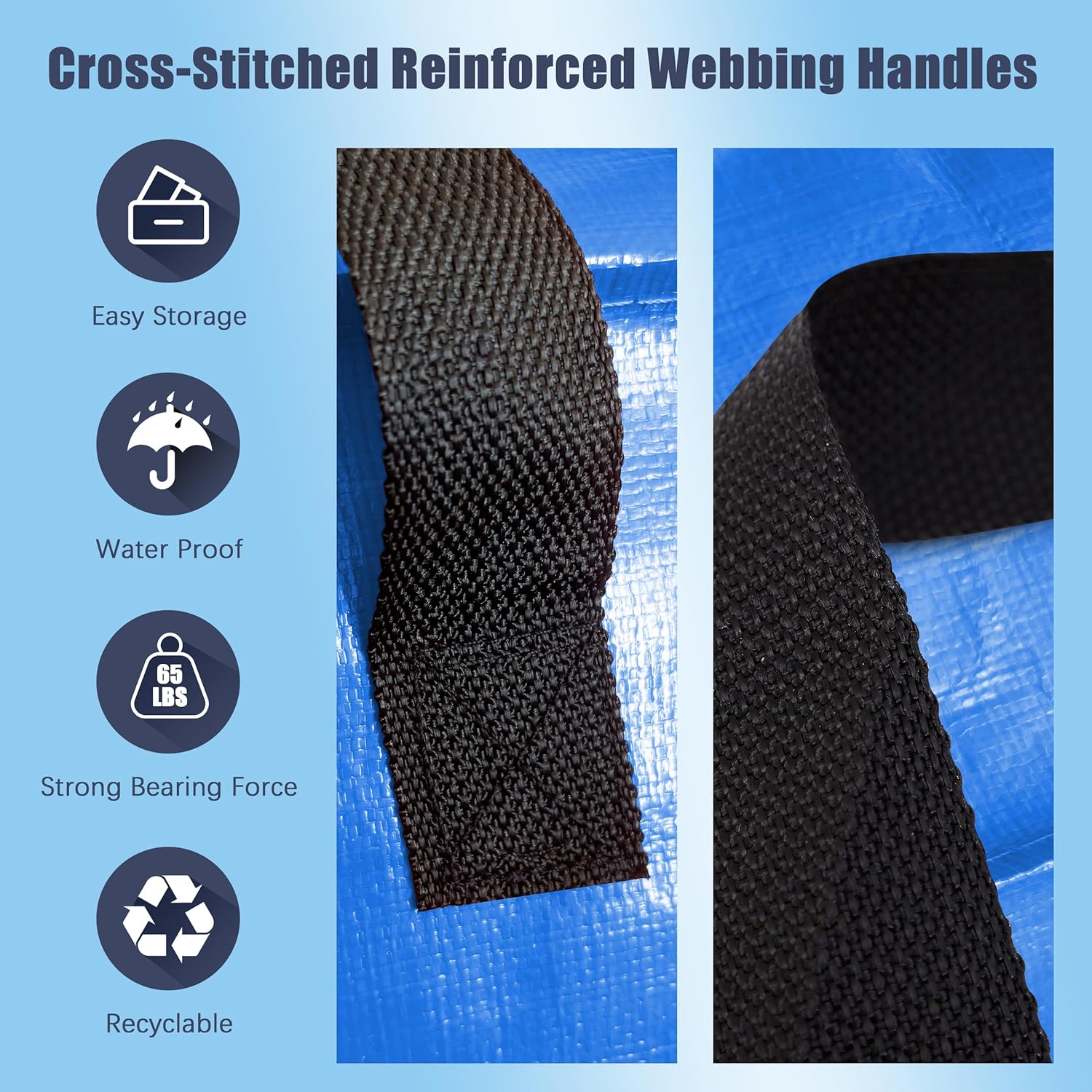 8 Pack Large Strong Moving Bags with Zippers & Carrying Handles - Water-Resistant - Heavy Duty Storage Tote for Space Saving, Fold Flat, Alternative to Moving Box (Sky Blue)