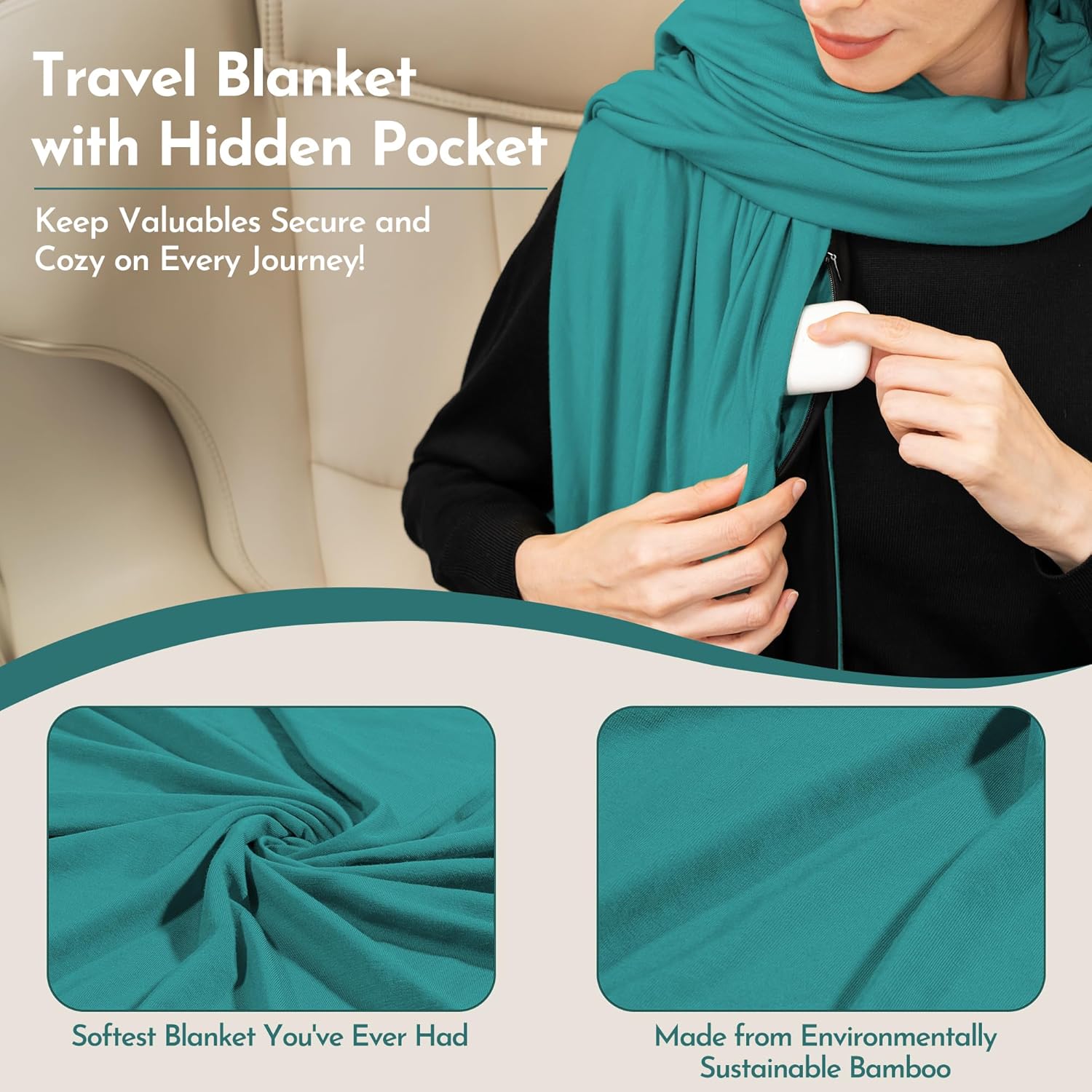 - 16-in-1 Versatile Travel Blanket: Use this compact blanket with bag as a reversible scarf, shawl, sarong, picnic blanket, nursing cover, pillow, or even cape. With a hidden zipper pocket to secure valuables, it's a must-have airplane travel essential for long flights.