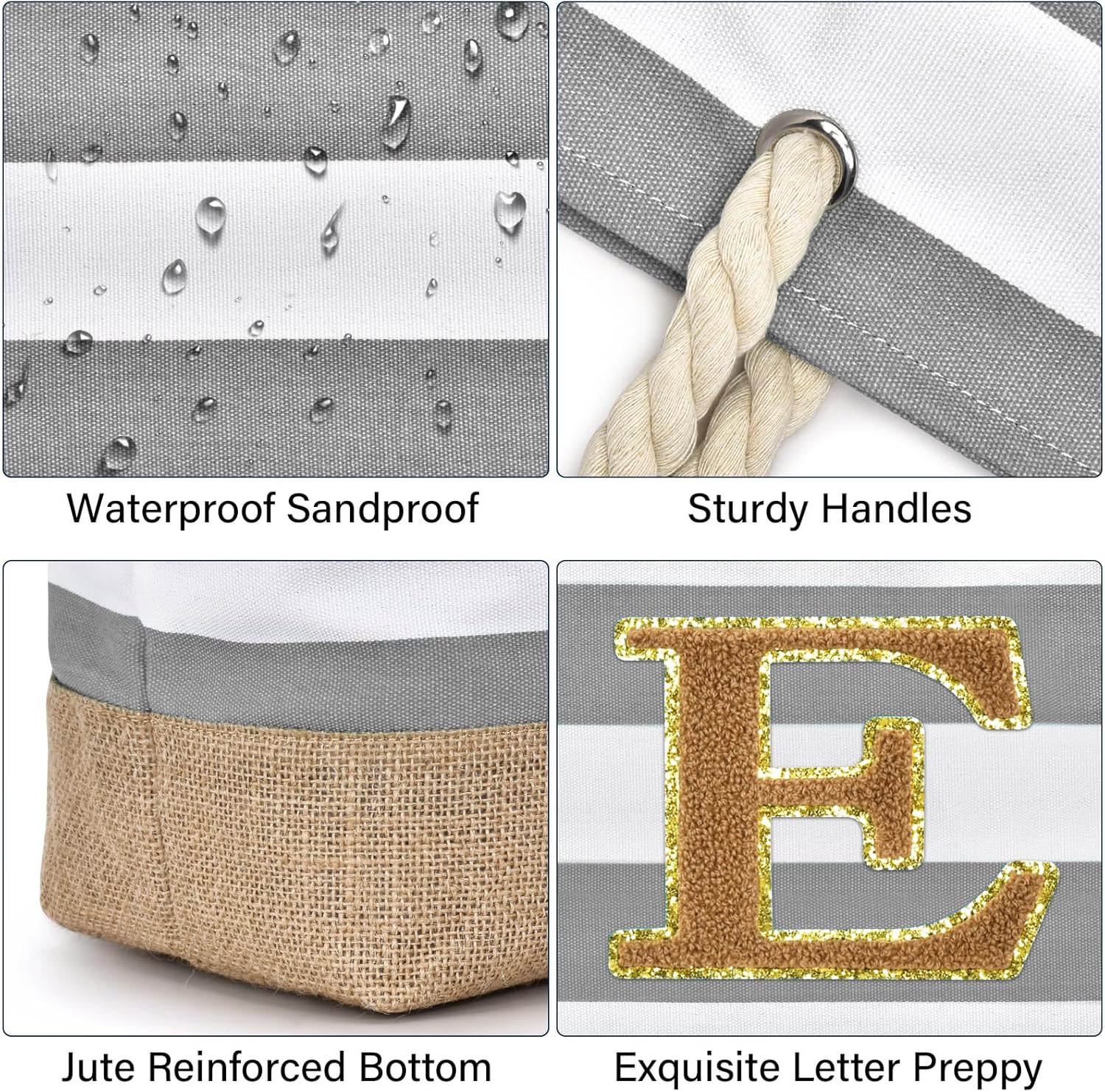 - Stylish & Unique Design: Adorned with a chic, stitched chenille letter edged in gold, the canvas tote bag is both stylish and unique. The letter symbolizes your individuality, while the classic stripe pattern and reinforced jute bottom add a touch of sophistication, making it suitable for any occasion