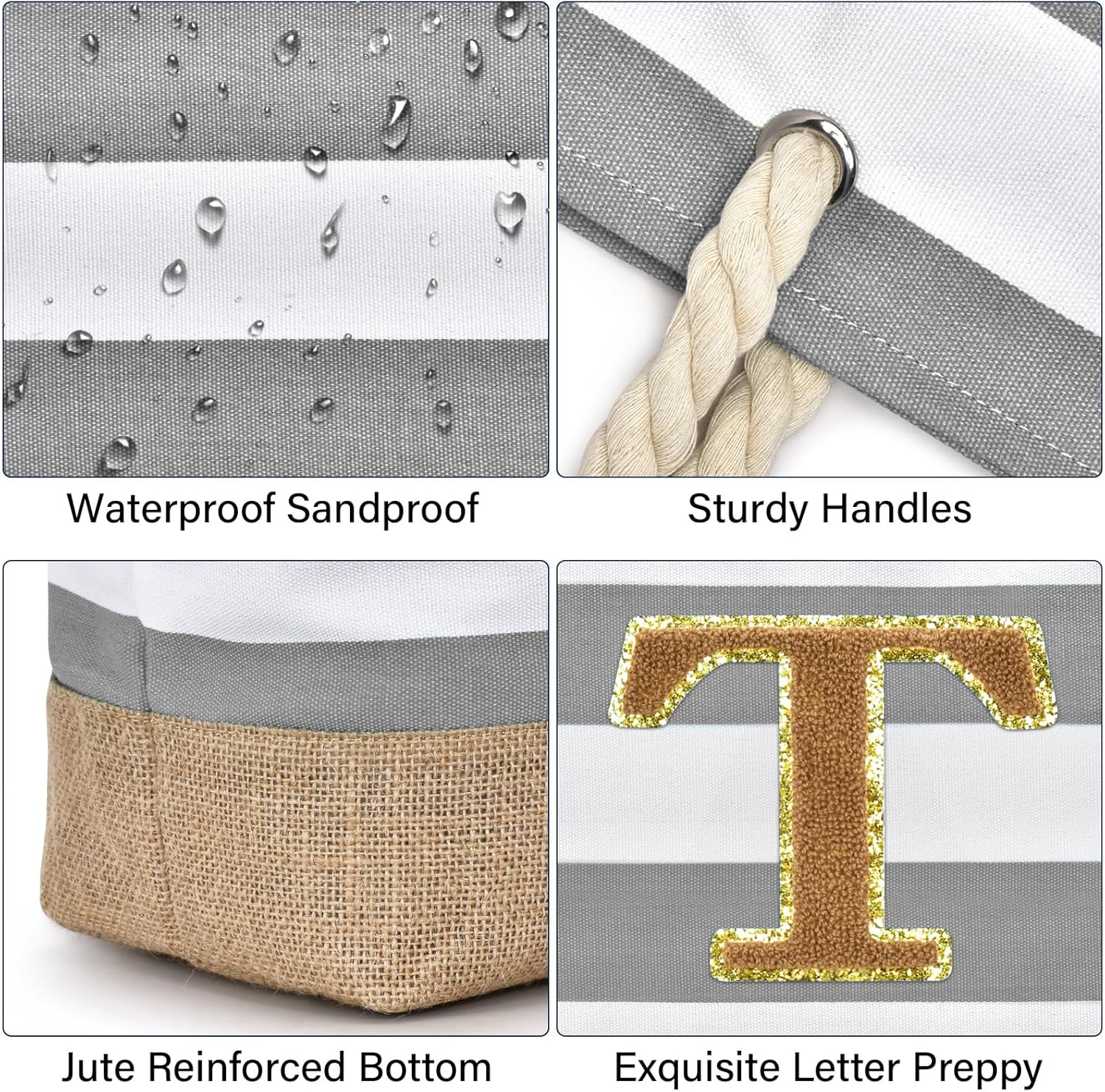 • Stylish & Unique Design: Adorned with a chic, stitched chenille letter edged in gold, the canvas tote bag is both stylish and unique. The letter symbolizes your individuality, while the classic stripe pattern and reinforced jute bottom add a touch of sophistication, making it suitable for any occasion