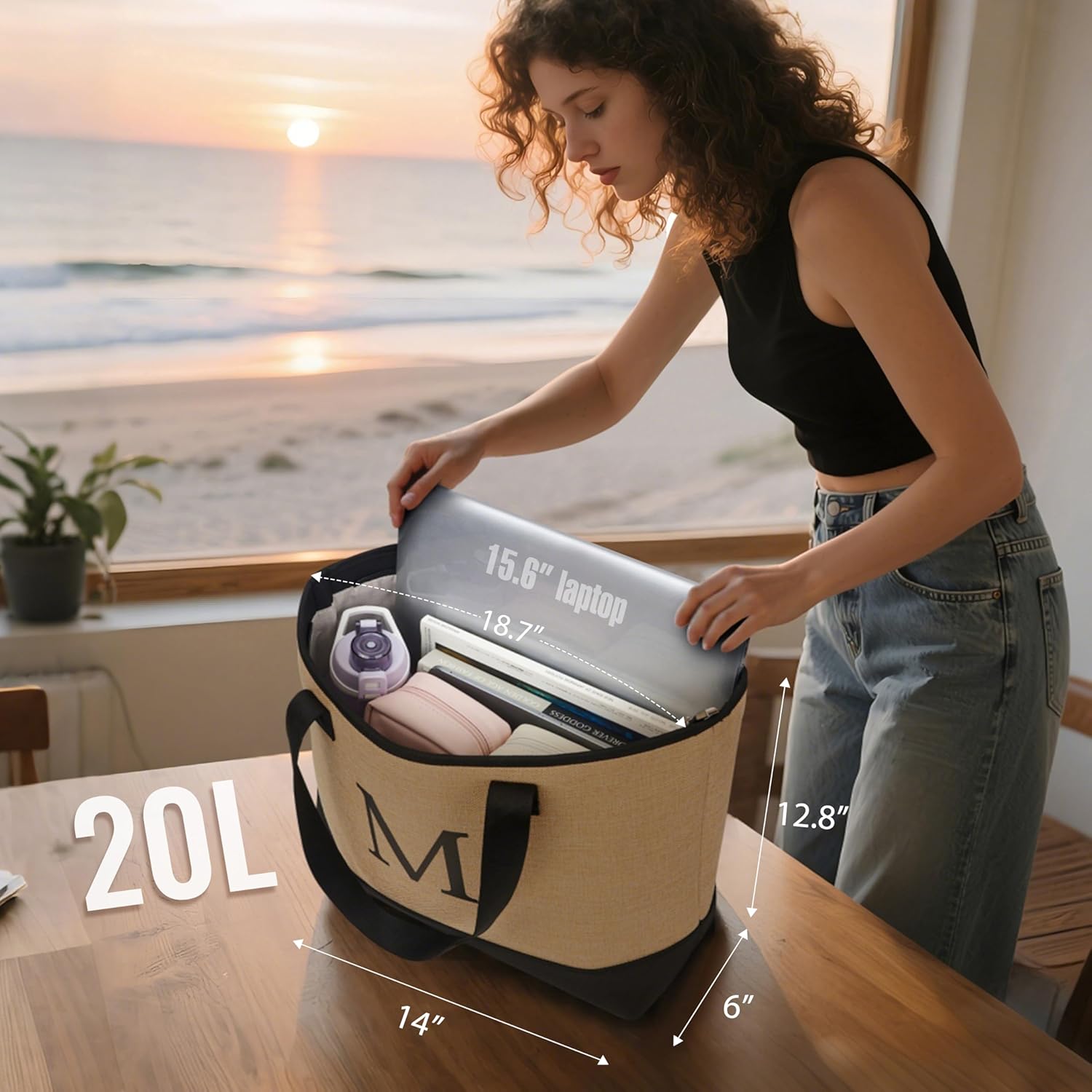 - Spacious and Secure Storage: Spacious enough to fit a 15.6-inch laptop and beach essentials, this tote features a secure zipper closure to keep your items safe. The 18.7”x12.8”x6” interior includes a zippered inner pocket for valuables and two slip pockets for keys or cosmetics, ensuring everything stays organized and secure.