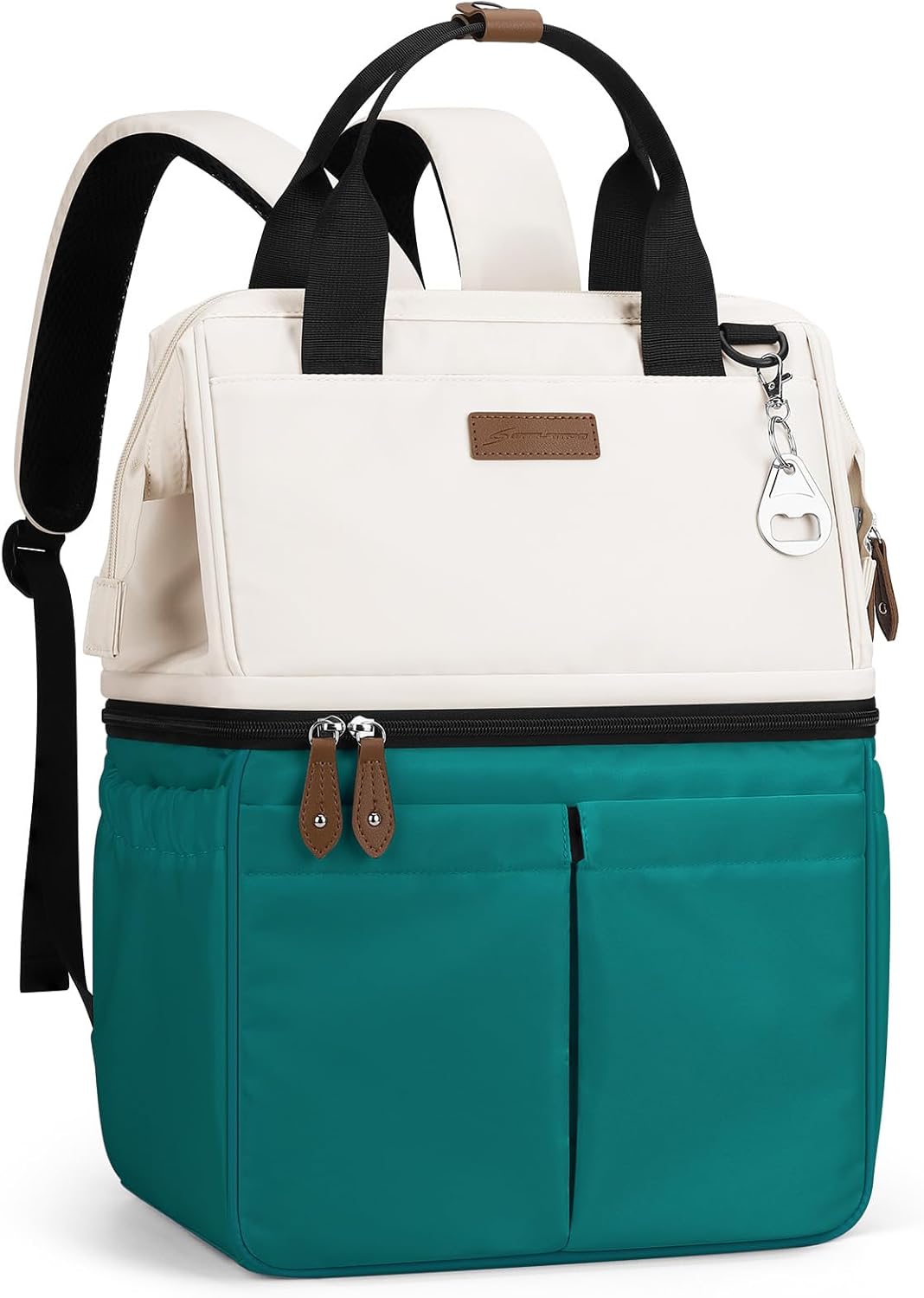 - Hot & Cold Separation Design: The double-layer cooler backpack is uniquely designed with an upper compartment for dry storage and an insulated lower compartment for storing beverages or food, which meets the needs of different scenarios of use; you can use it as an insulated lunch backpack, or as a portable cooler for the beach, picnics, hiking, fishing, camping, traveling, or other outdoor activities.