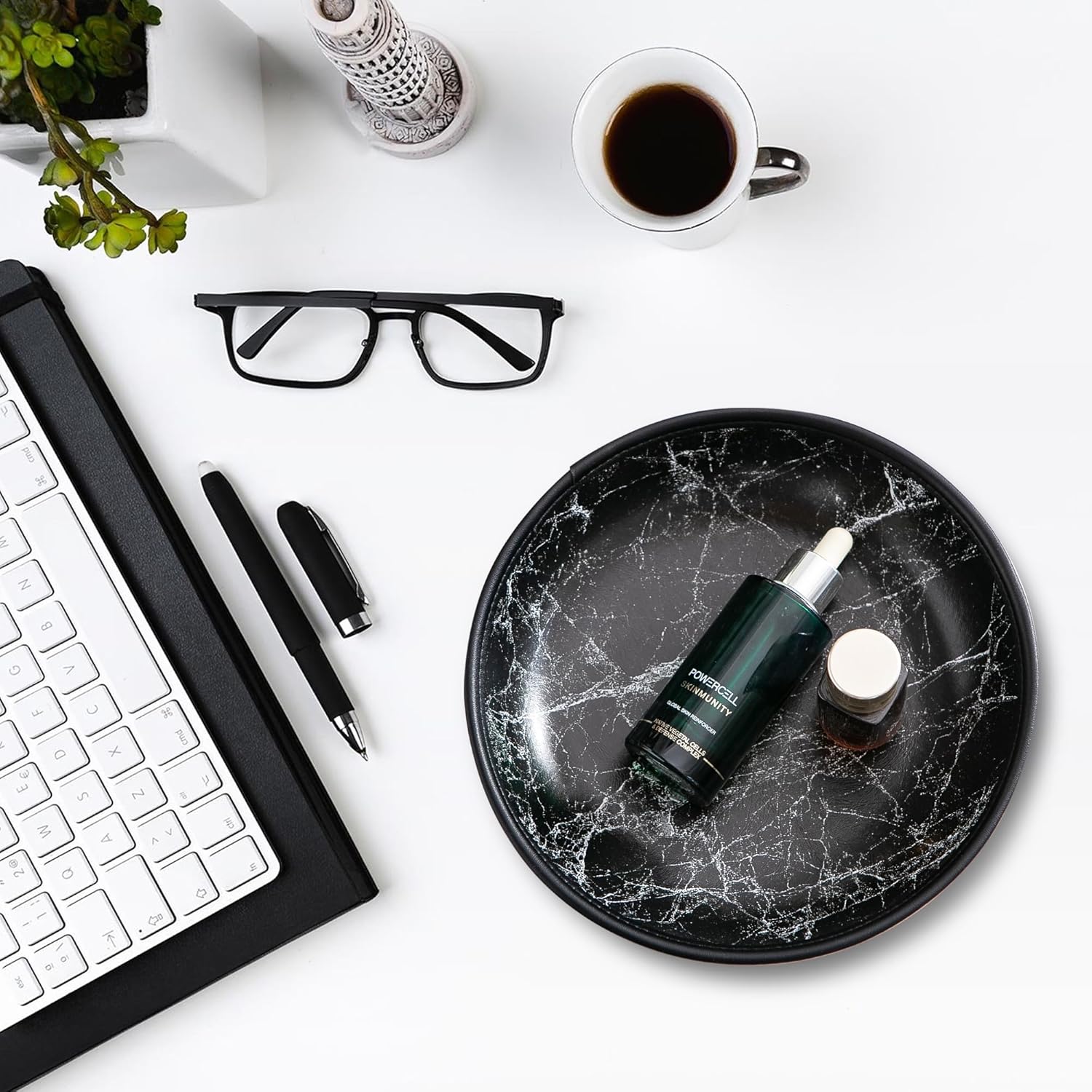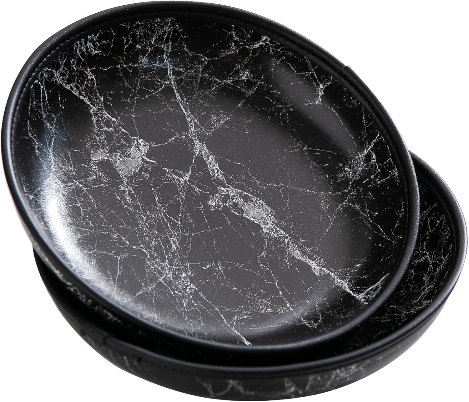 2025 Improved Design Round Marbled Leather Valet Tray Organizer Set of 2, Hard Leather Catchall Tray for Watches, Keys, Wallets, Jewelry & Candys on Desk, Bedside, Nightstand(Round Hard)
