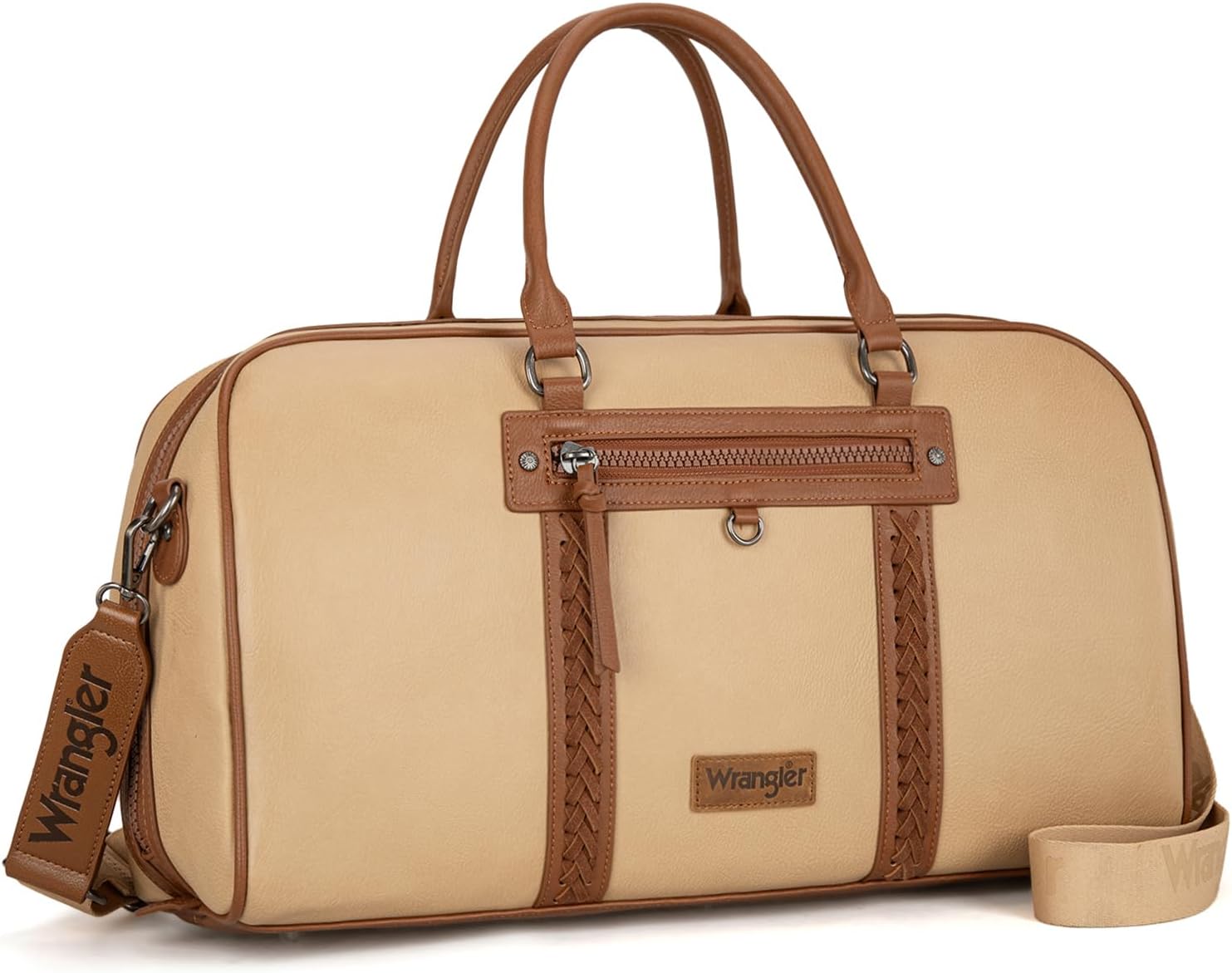 Wrangler Travel Duffel Bag Large Weekender Bag for Women Designer Carry on Overnight Bag for Trips Leather Luggage Bag Tan