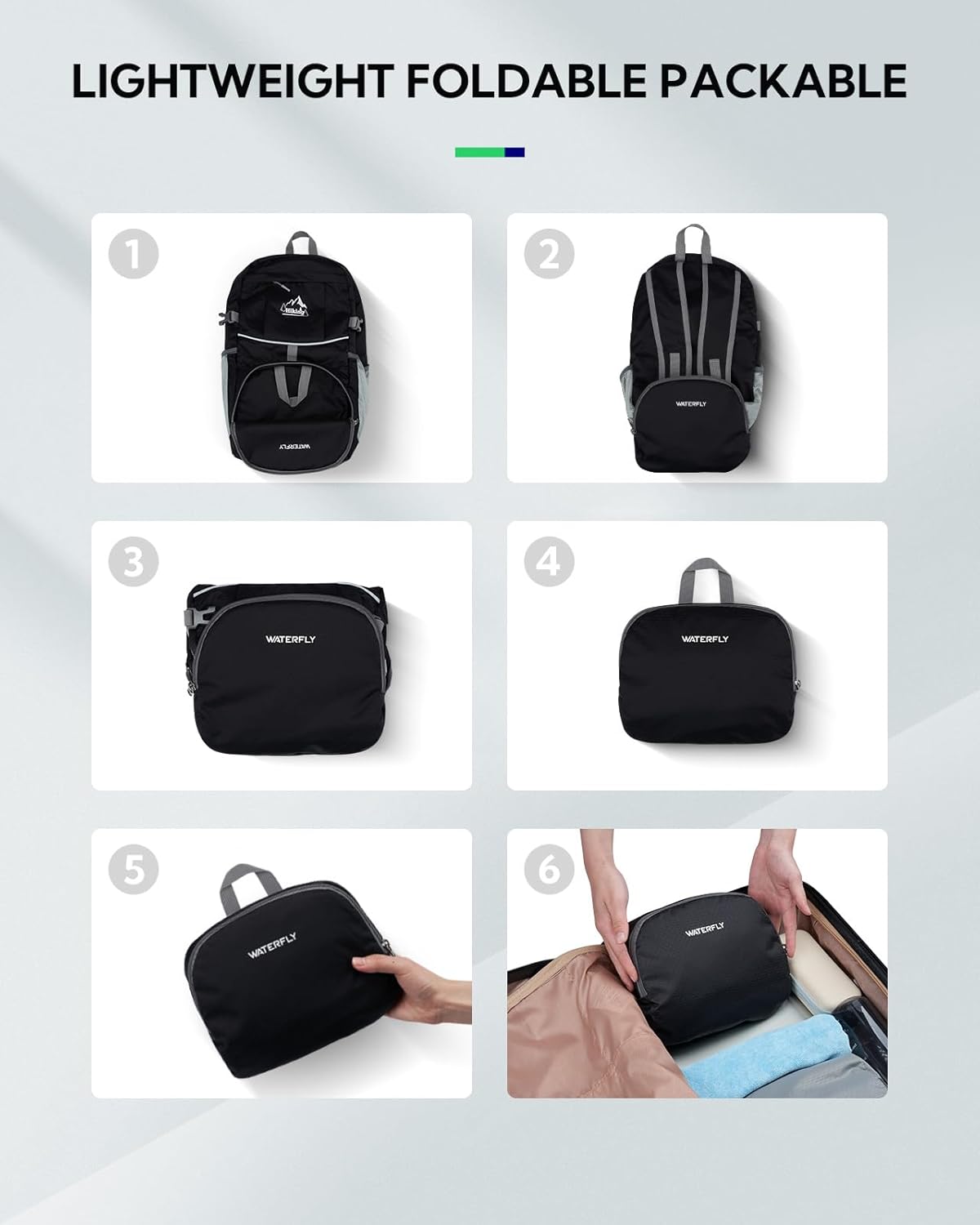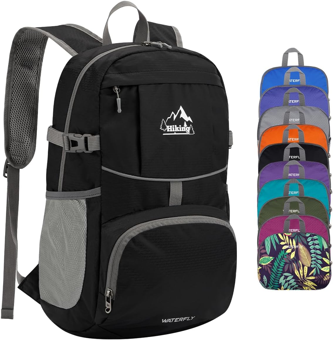 WATERFLY Hiking Foldable Daypack Backpack: 25L Ultra Lightweight Packable Waterproof Outdoor Travel Day Pack for Woman Man
