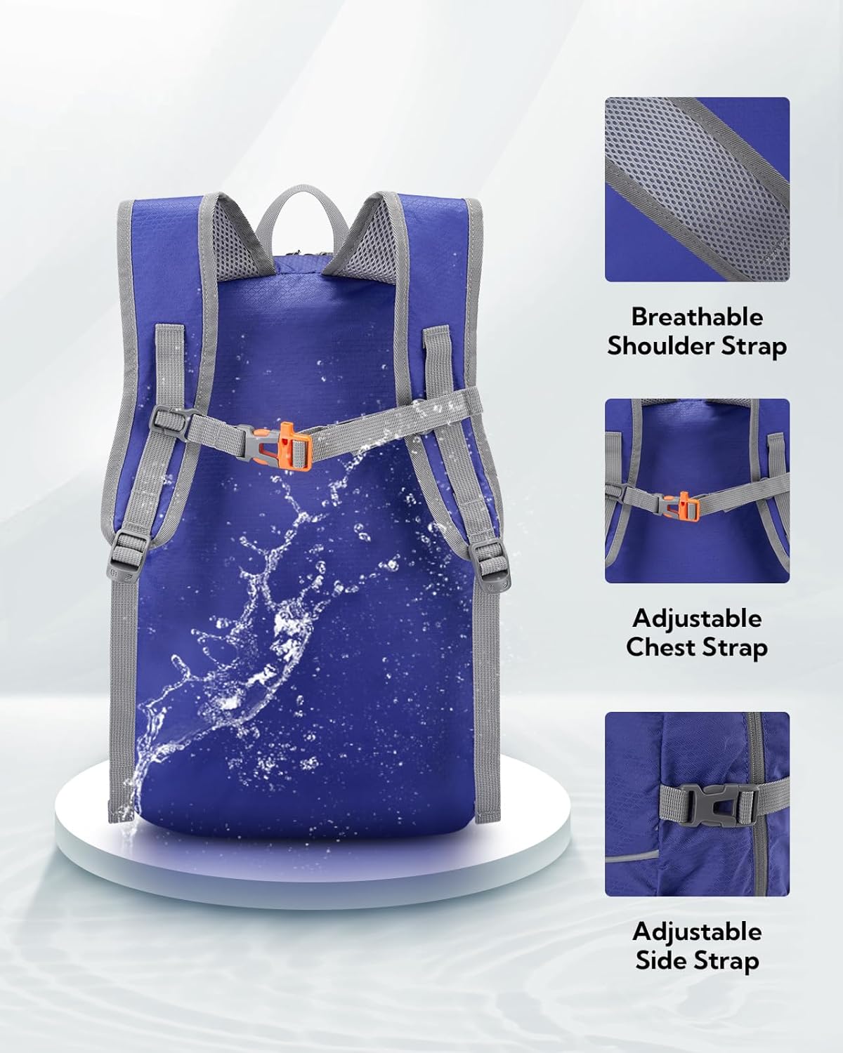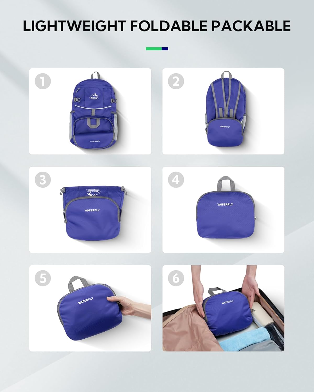 WATERFLY Hiking Foldable Daypack Backpack: 25L Ultra Lightweight Packable Waterproof Outdoor Travel Day Pack for Woman Man
