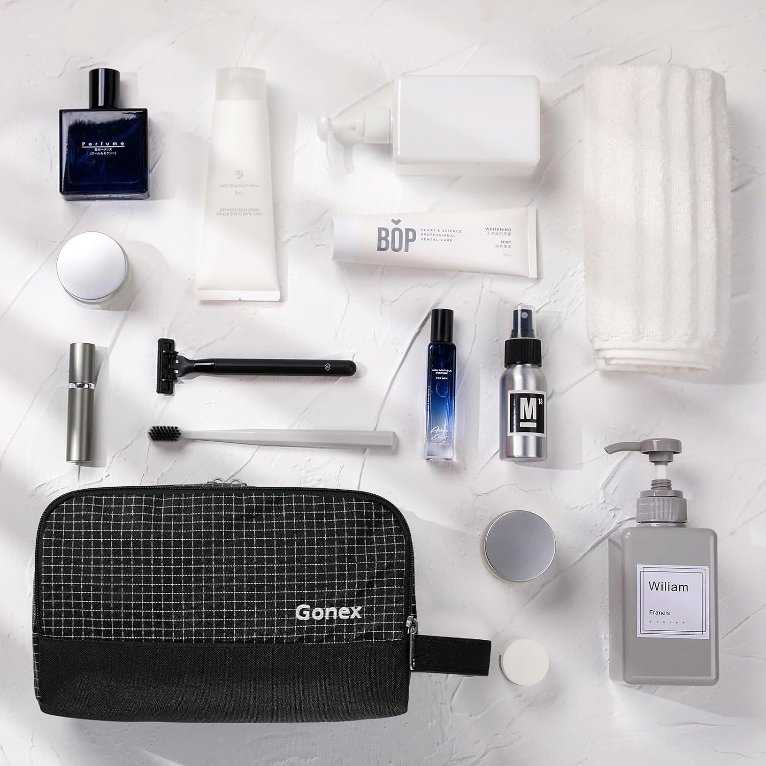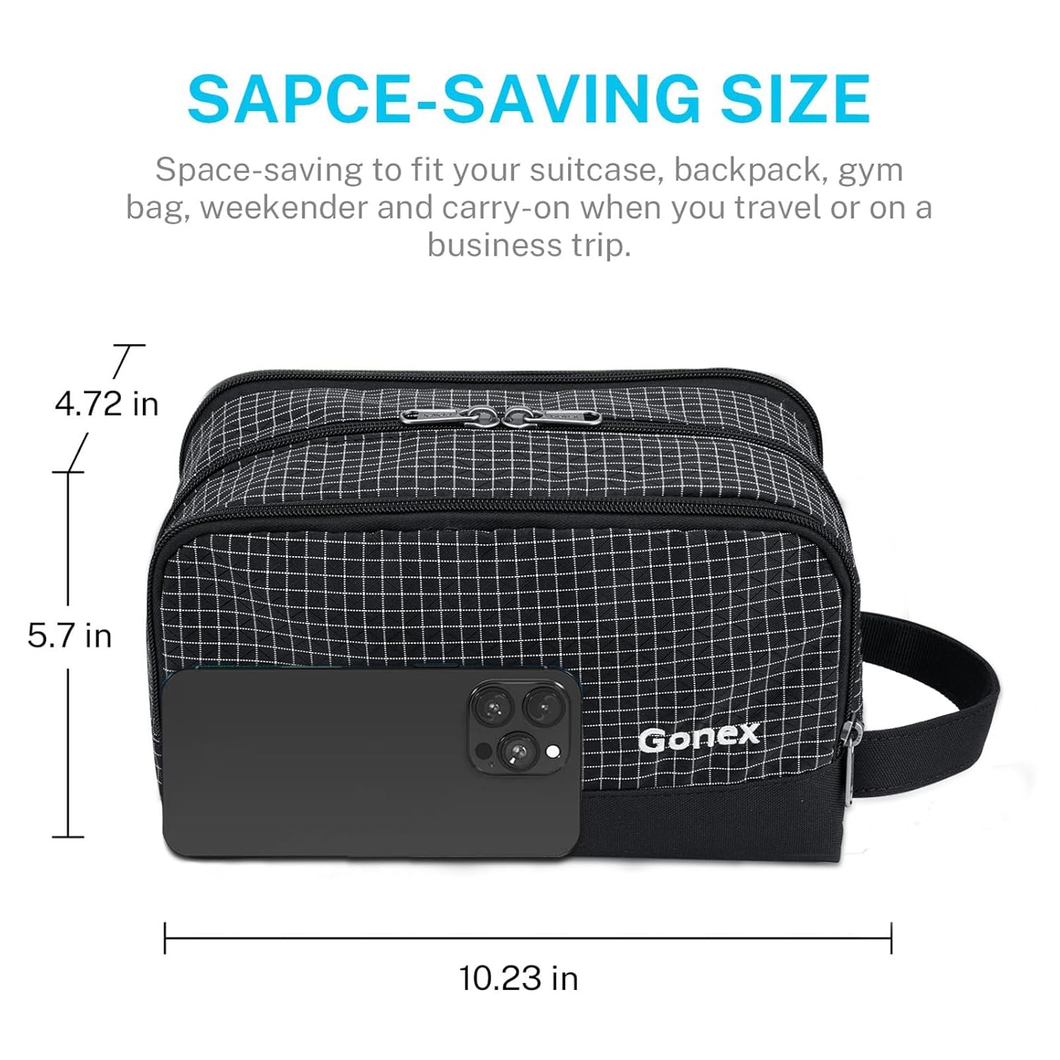 Gonex Travel Toiletry Bag Nylon, Dopp Kit Shaving Bag Toiletry Organizer Check Patten (Black)
