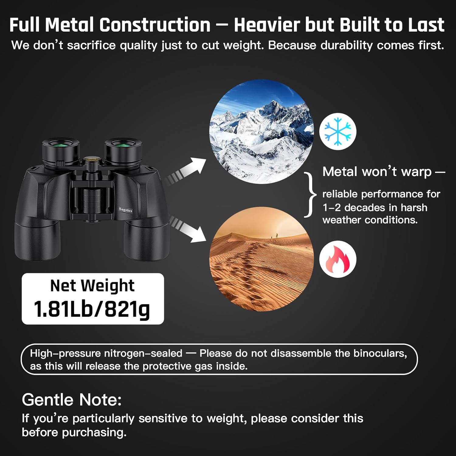 - Weight Reminder-- binoculars design requires a metal barrel to ensure stability, and it is recommended to use a tripod (not portable). Additional purchase: B0D9TK1D64.