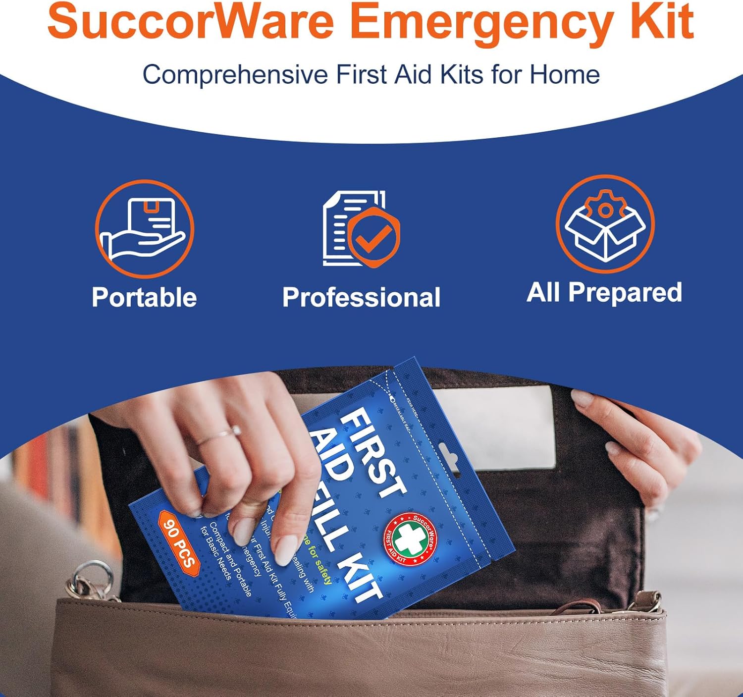 - 90 PROFESSIONAL EMERGENCY ESSENTIALS - Our first aid refill kit contains 90 carefully selected medical supplies for your basic care needs, perfect for backpacking, camping, hiking and outdoor adventures.