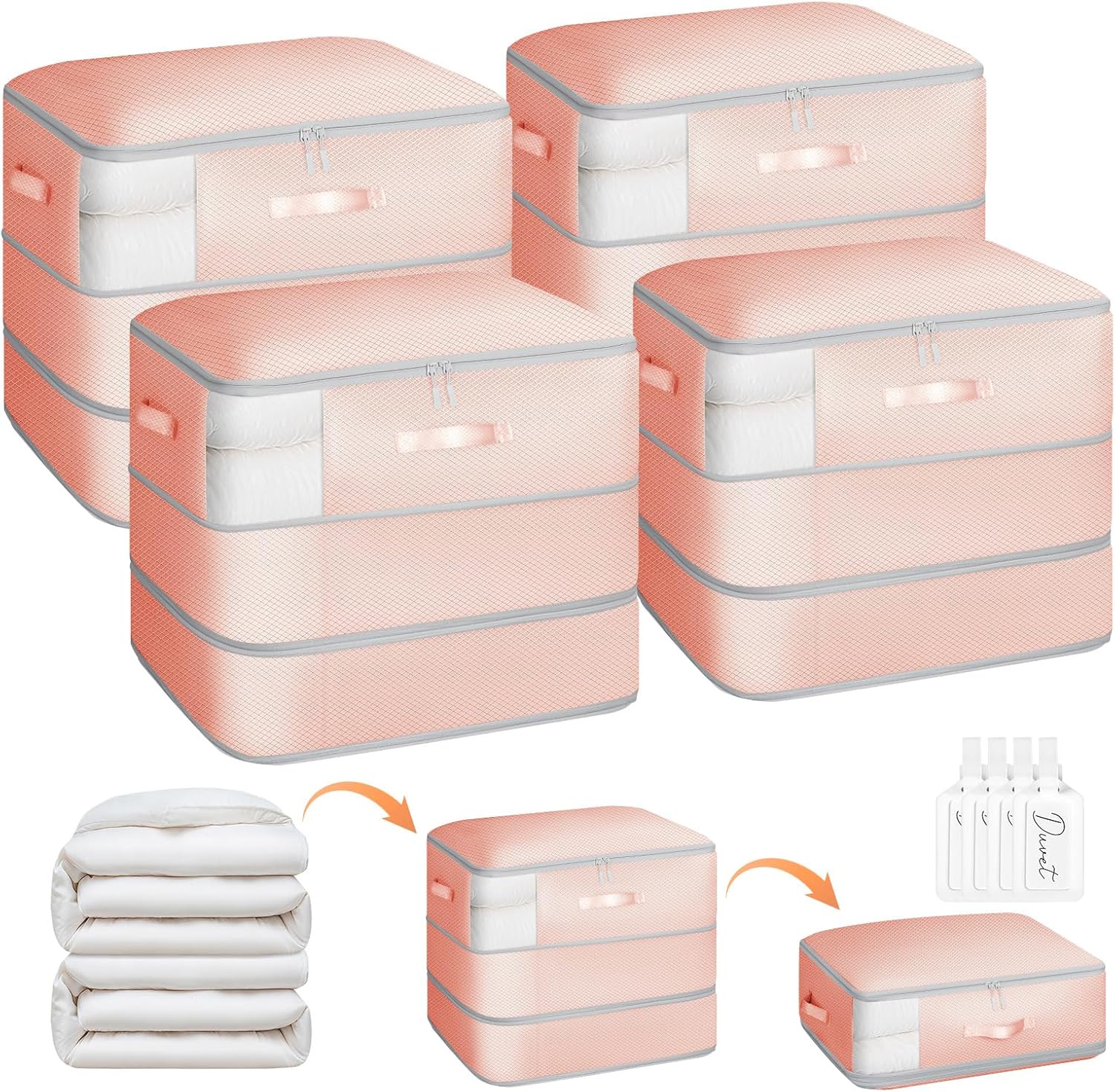 4 Pack Compression Storage Bags - 110L Large Capacity Comforter Storage Bag, 3-Layer Washable Ultra Space Saving Self Compression Organizer Space Bags for Blankets, Sweaters, Sheets, Pink