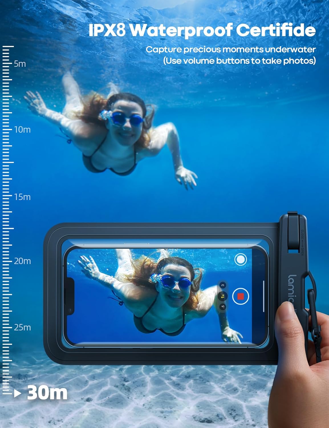 - Beach Vacation Essentials : Upgraded locking clips, high quality materials and latest seamless heat-press technology. It is waterproof to a depth of 100 feet, which protects your smart phone from water, snow, sand, dust, etc. One of the best travel essentials for beaches, pools, swimming, rafting, surfing, fishing, sailing, diving, boating, kayaking, snorkeling, tubing, and more indoor and outdoor activities.