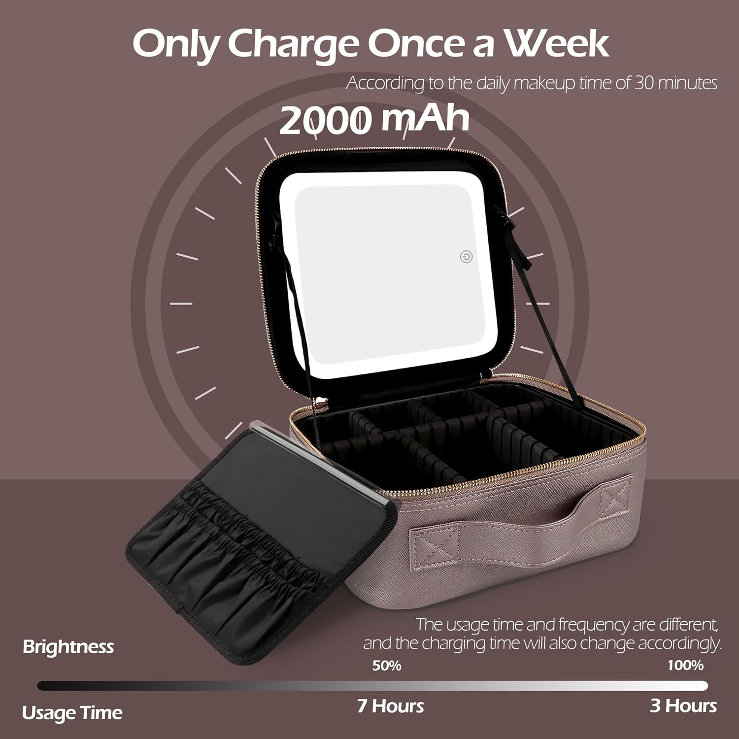 MOMIRA Travel Makeup Bag Cosmetic Bag Makeup Organizer Bag with Lighted Mirror, Adjustable Brightness in 3 Color Scenarios, Waterproof Makeup Train Case, Gift for Women - Pearl Light Gray